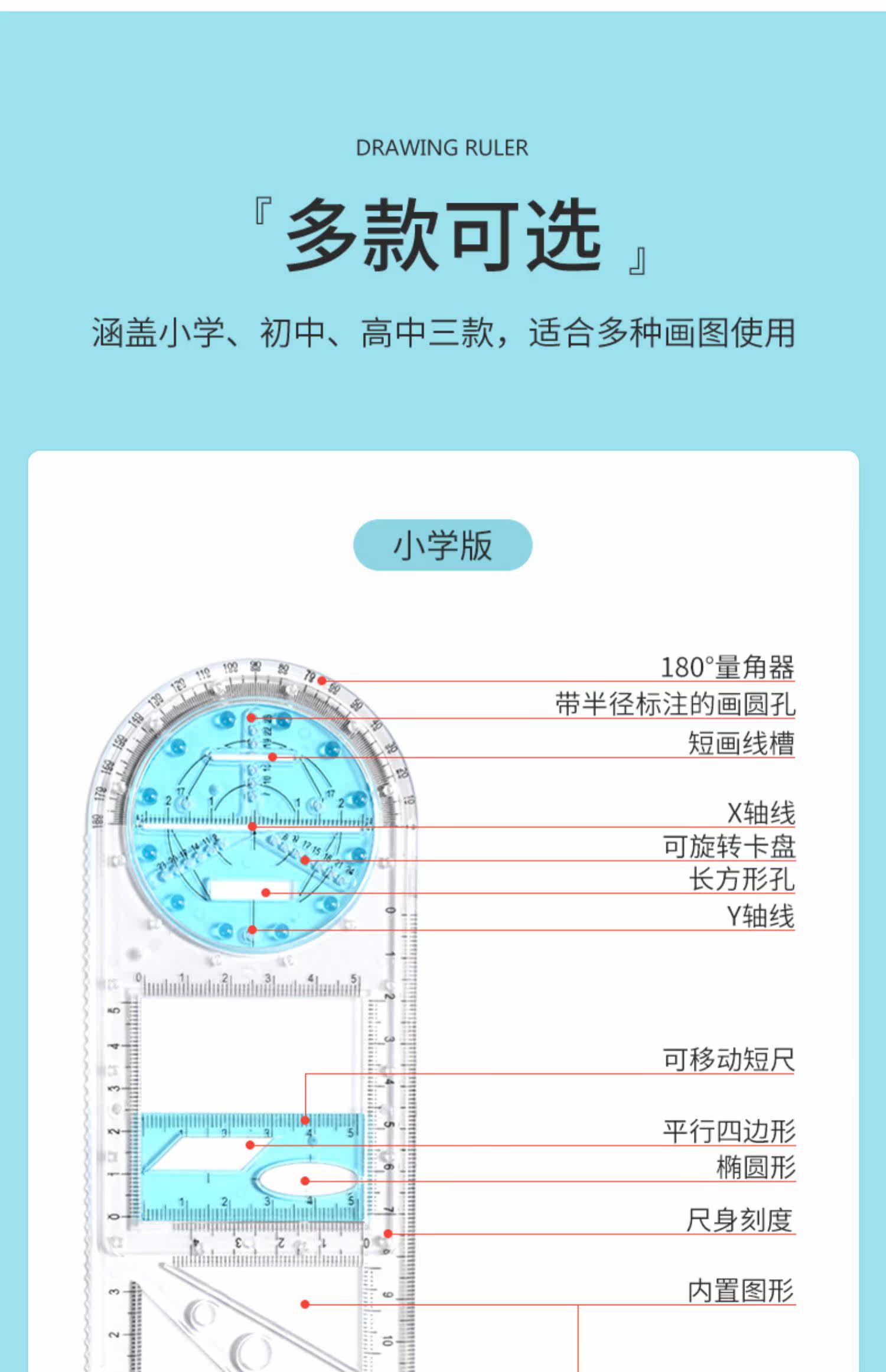 Мультифункциональная линейка начальной школы. Ученик, рисование, правитель, может повернуть функцию геометрический графический графический параболический параболический высокопозиционный рецидив круглый график