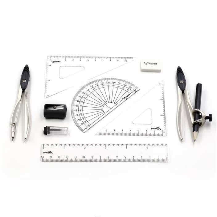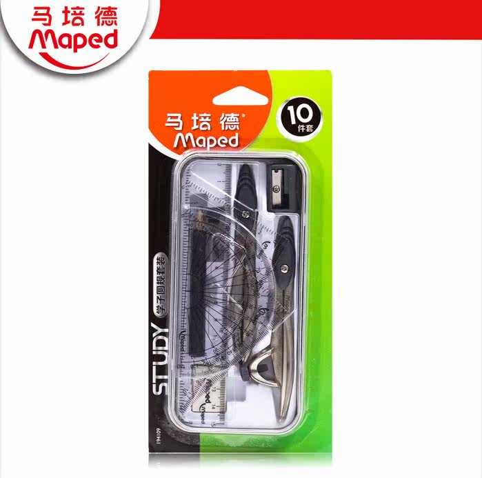 Нанесенная на карту Mayeid 019409 Студенческие круглые правила десяти -цепные набор треугольных канцелярских канцелярских товаров Комбинированные металлические железные коробки