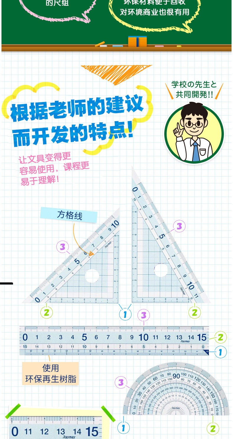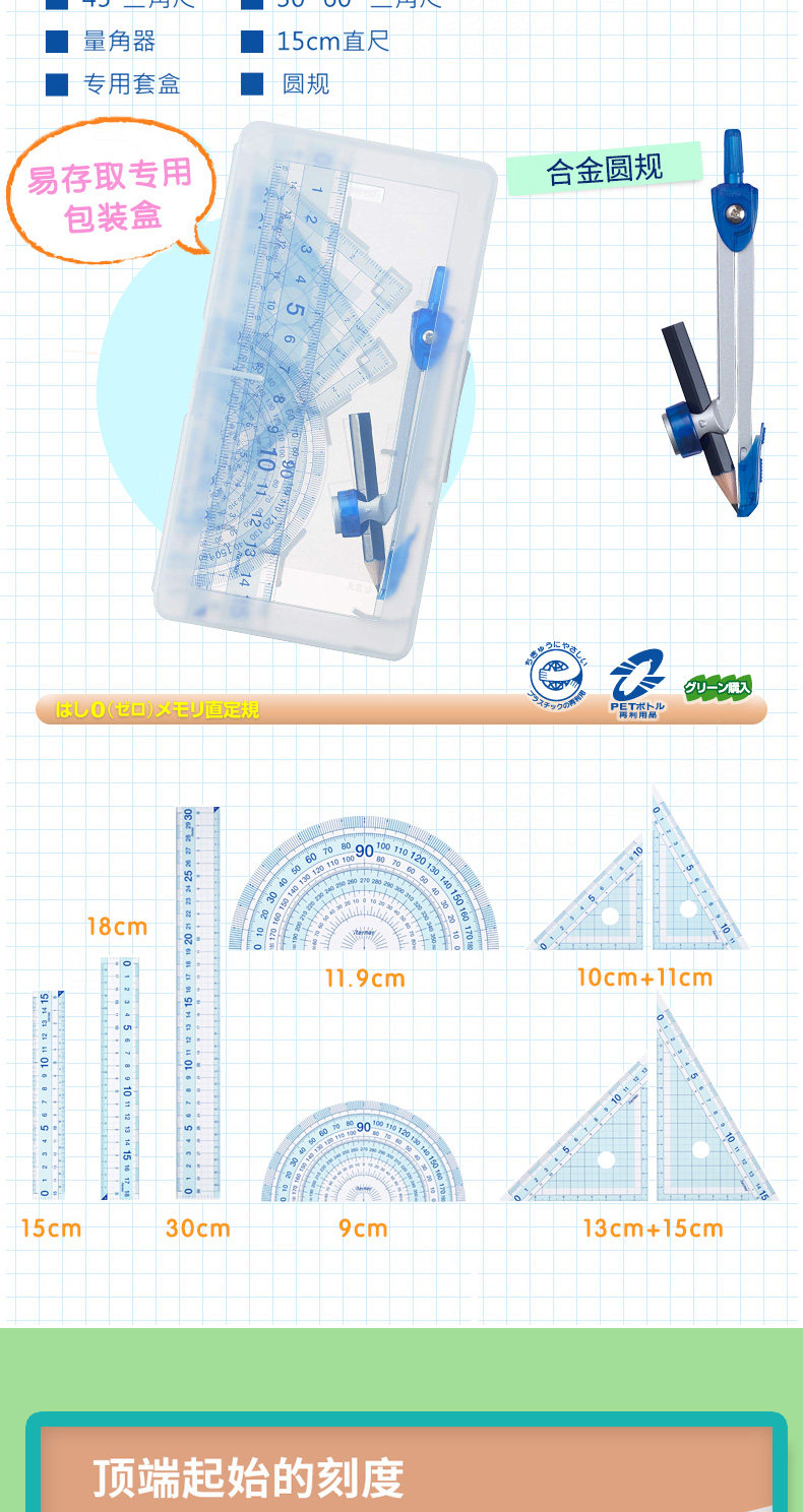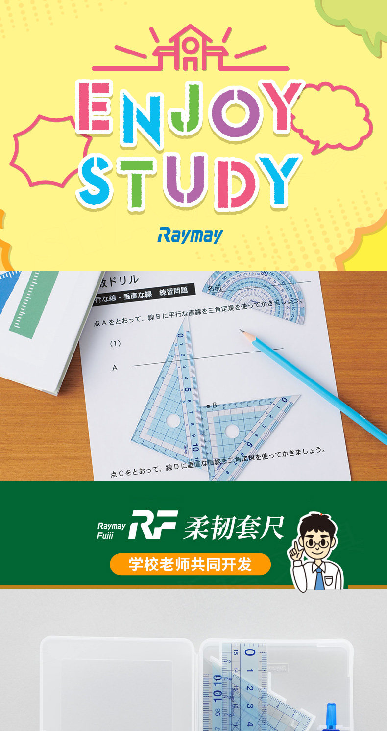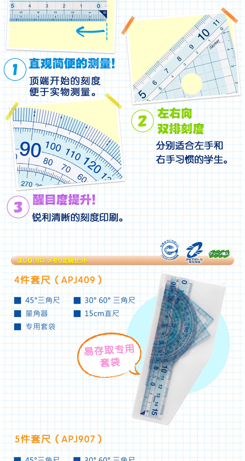 Японская линейка, универсальный комплект для школьников и студентов, прозрачный детский набор инструментов