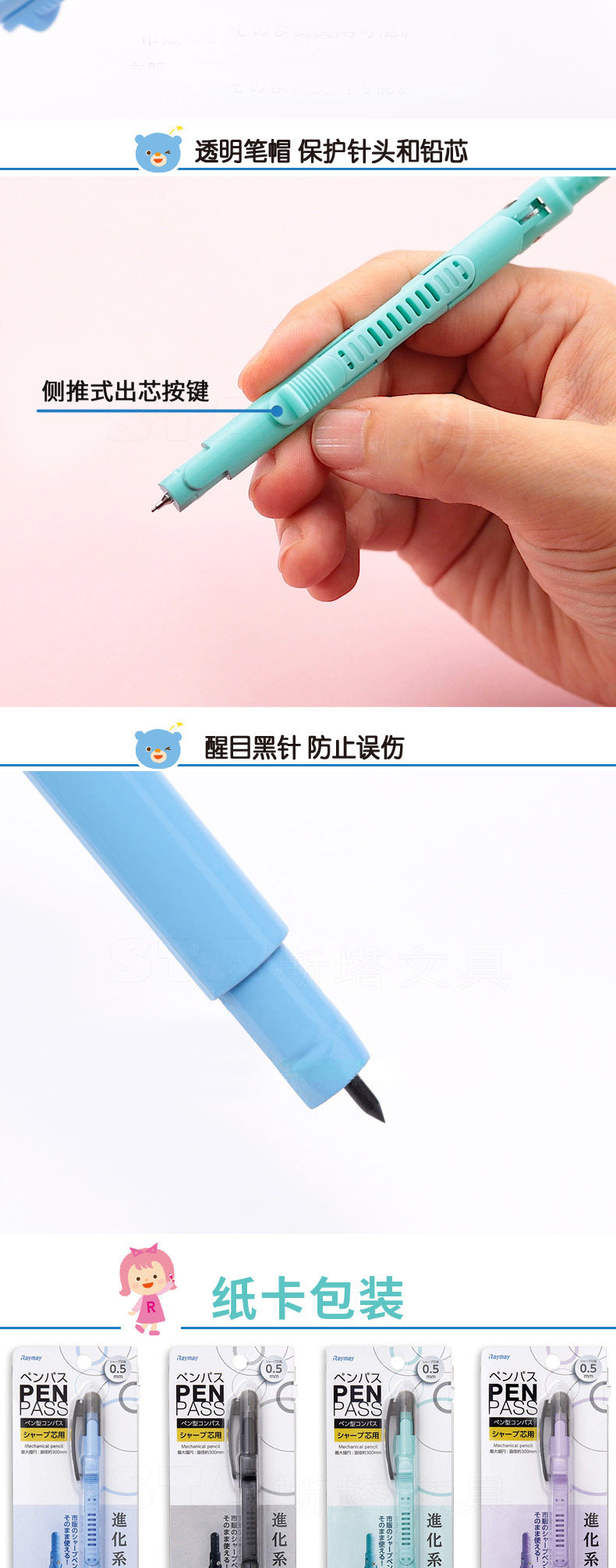 Япония Raymay Student Mathematics Brishwork JC903 Автоматическое карандашное безопасное и портативный круг