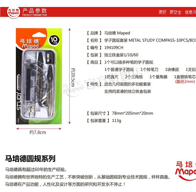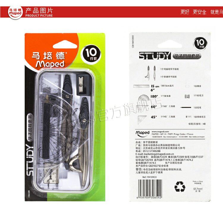 MAPED/MA PEIDE RUGEN Правила десяти -части SET Triangle Straight Ruler 194109 Установка изысканной железной коробки 194109
