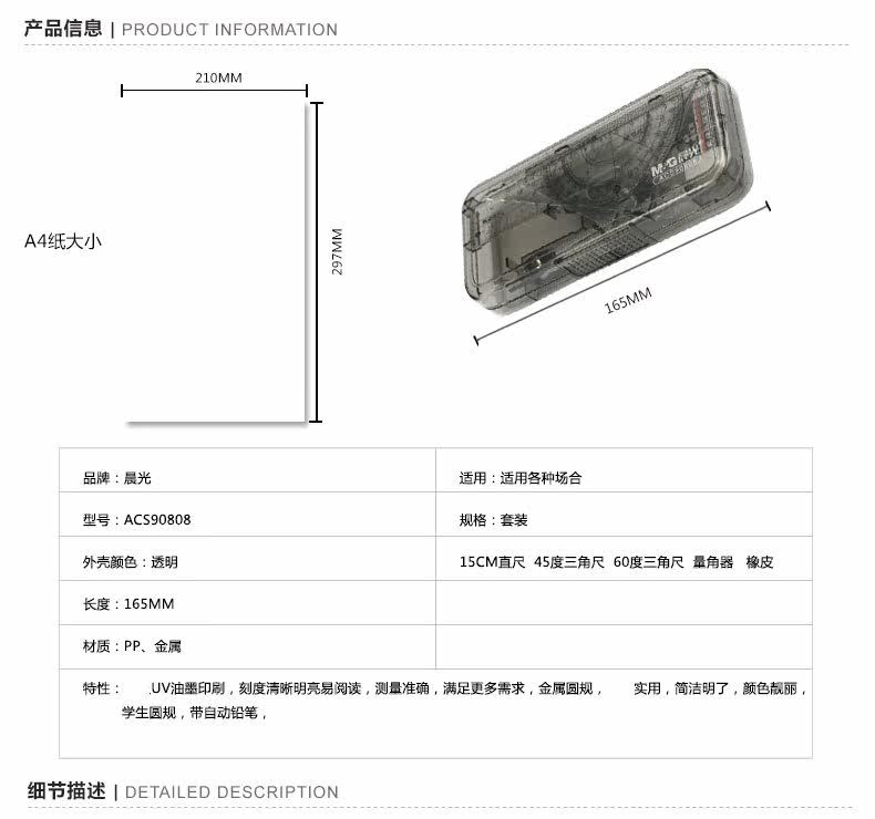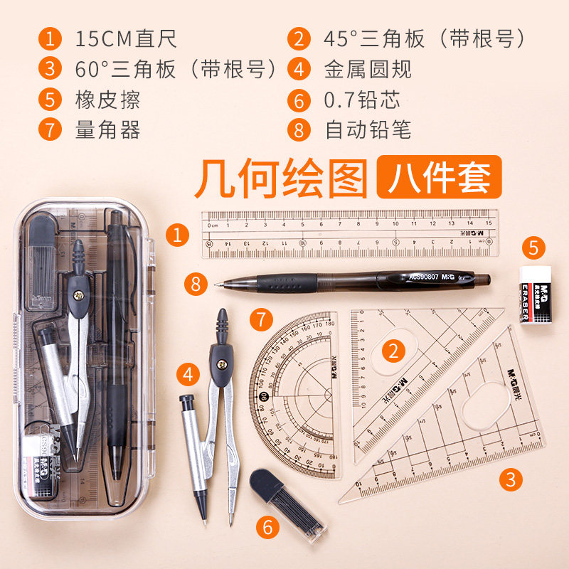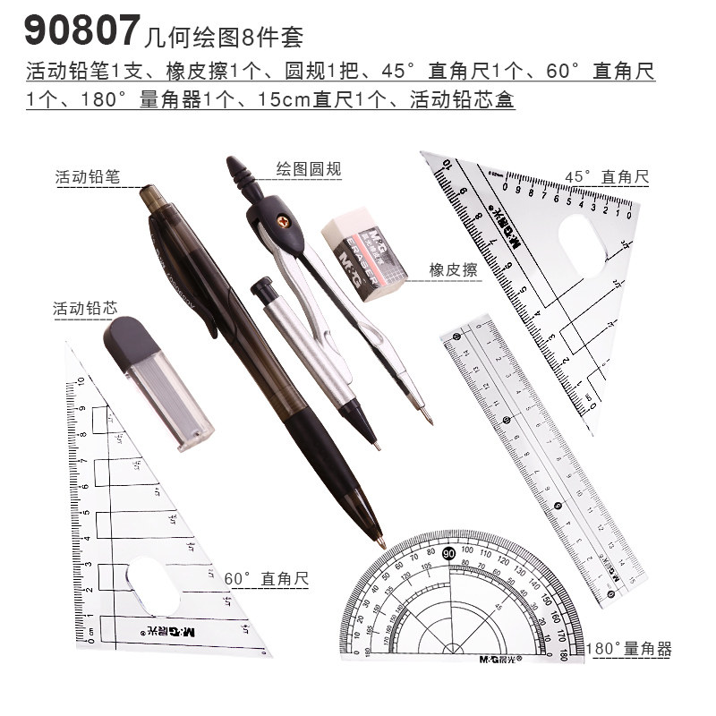 Бесплатная доставка Chenguang Студенческие канцелярские канцелярские товары ACS90807 Восемь -куплент Clane Corner Corner Corner Round Metropolitan Sets Metric Brings