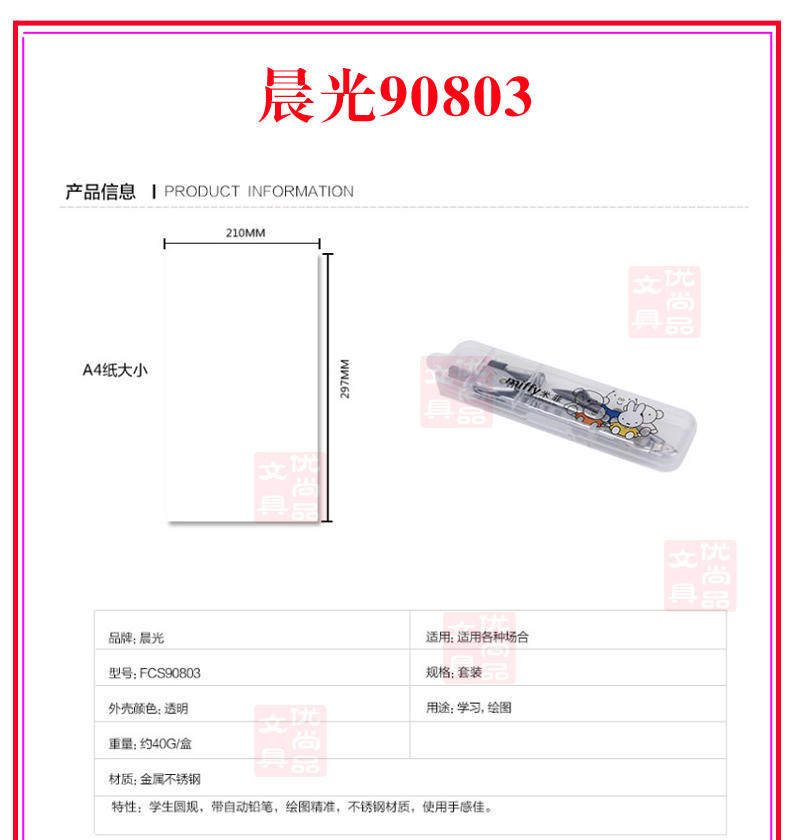 Бренд Канцелярия FCS90803 MI FEI ALL -Метальный круглый правила рисовать Design Design Countrage с карандашным ядром