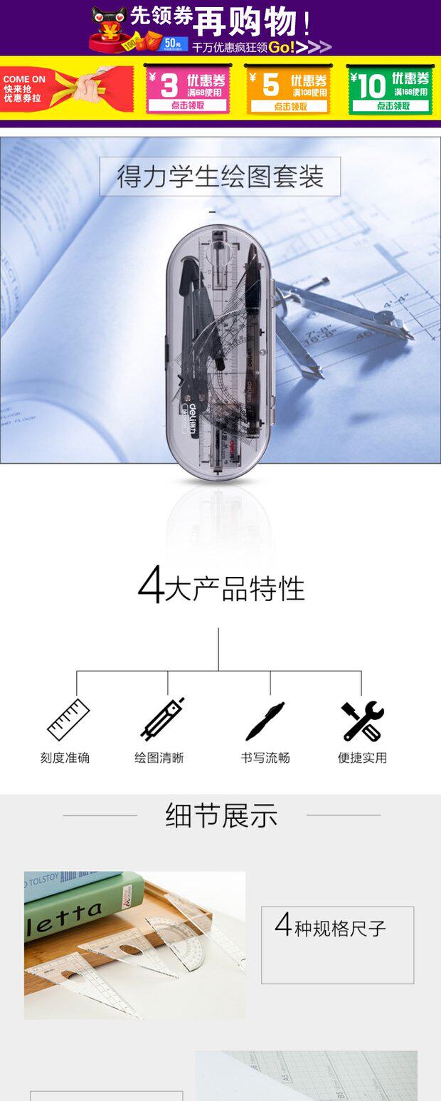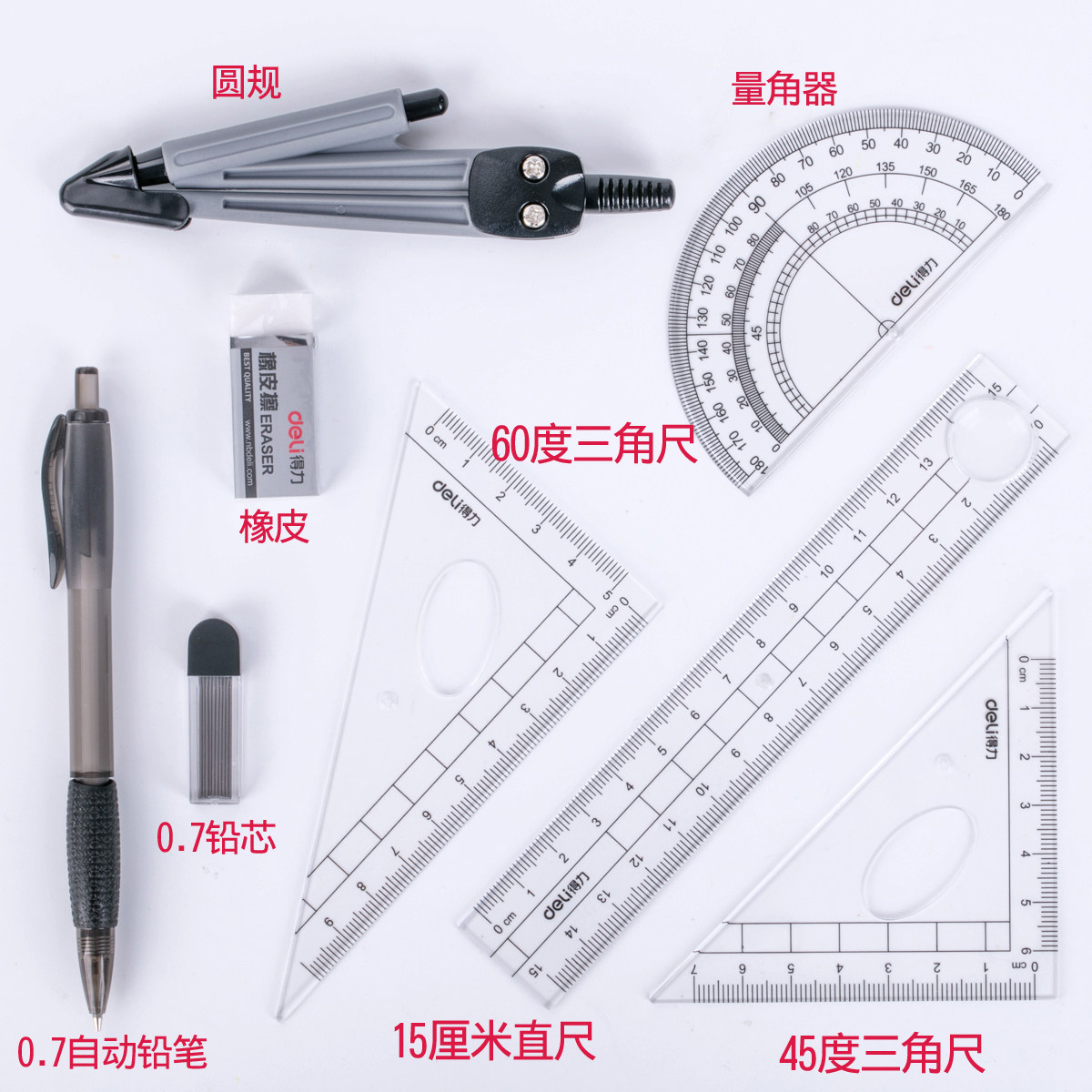 Deli Set 9591 Студенческий рисунок набор 8 -Пексов круглого круглого правила Автоматические карандашные треугольники Рейнджерс
