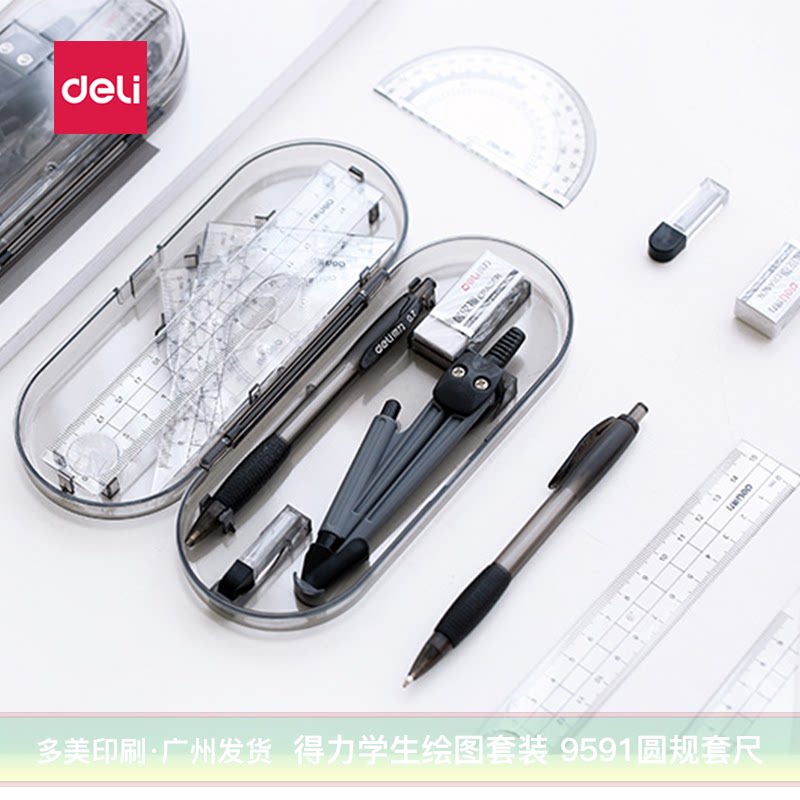 Deli 9591 Круглый набор правителей 8 -Piece Студент с тестированием на рисование специальное правитель