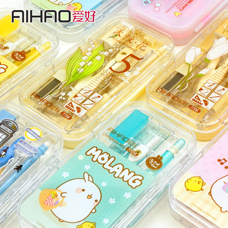 Канцтовары для школьников и студентов, милый свежий комплект, треугольная автоматическая линейка для карандашей, 8 шт