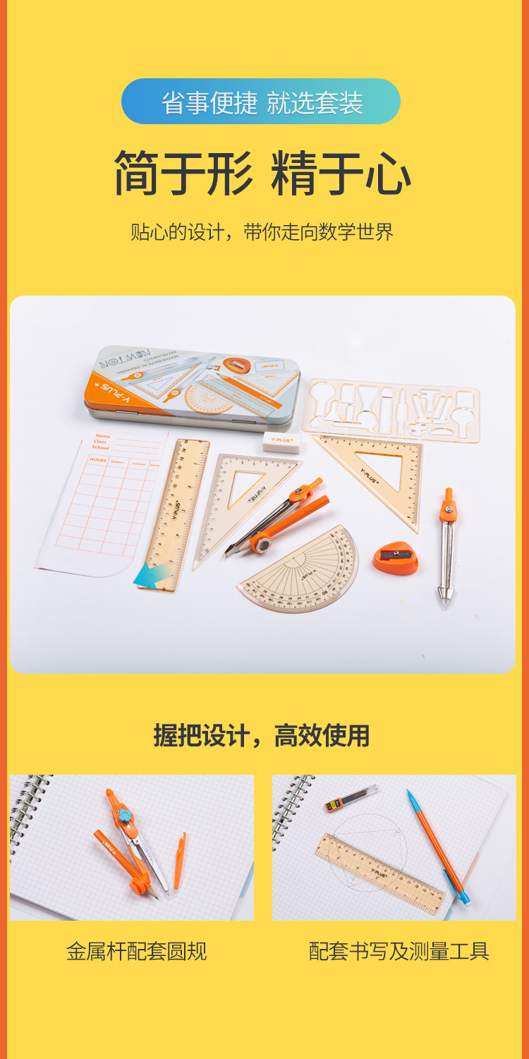 Линейка для школьников и студентов, универсальный милый комплект, пенал для обучения математике, для средней школы