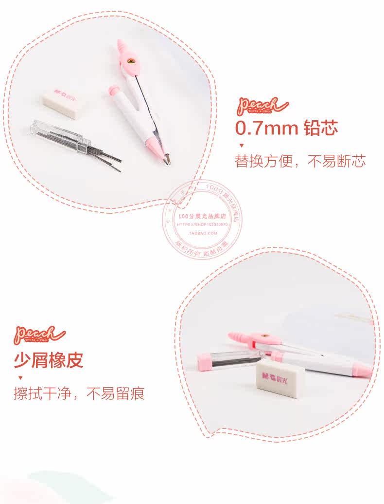 Ченгуанг канцелярских товаров Peach Peach серия серии серии круговых рисунков набор инструментов для студентов обучения ACSN1333