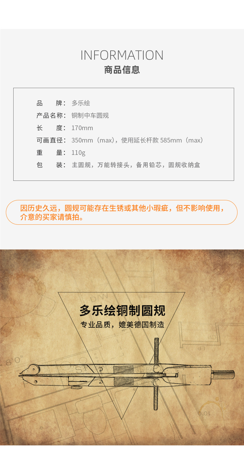 多乐绘 Copper Quick Crrc Compass, компас для студентов-механического архитектурного дизайна с многофункциональными инструментами для рисования крупных металлов.