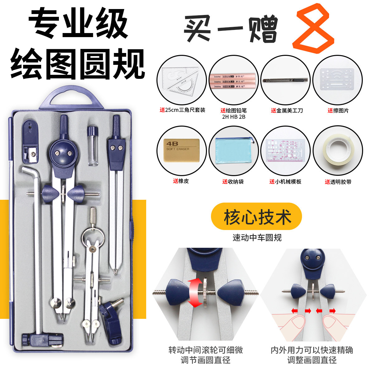 Используйте гражданские инструменты для рисования пакета рисования рисунок, инженерный набор рисования, набор правителей, профессиональные металлические инструменты, набор инструментов крупные инструменты.