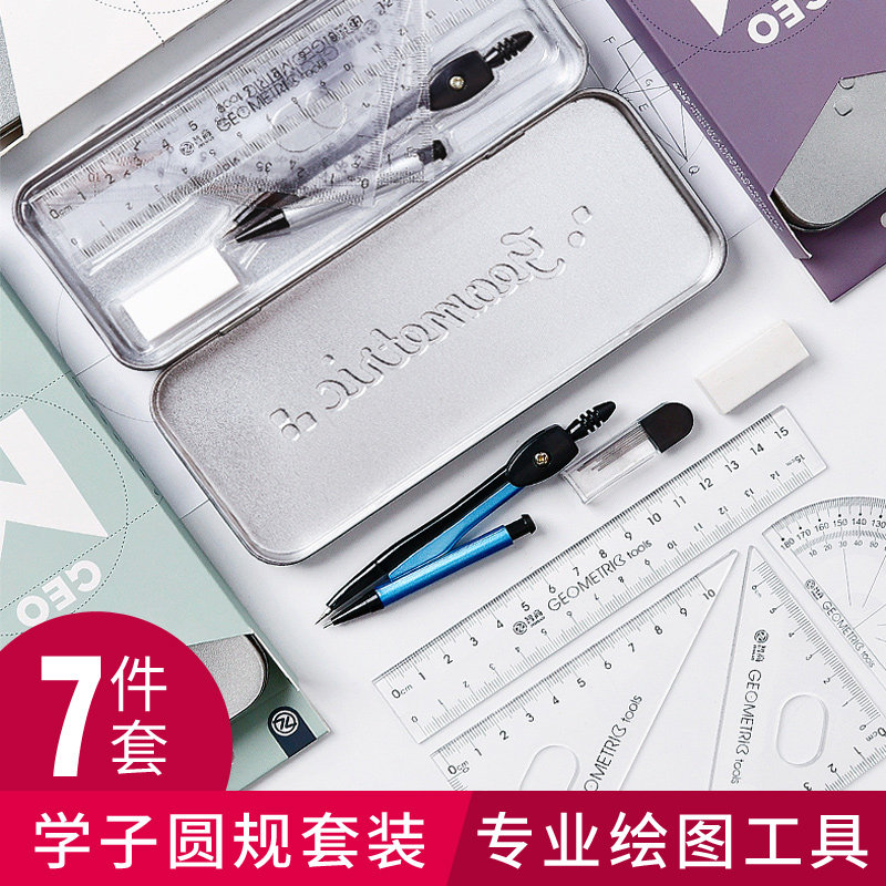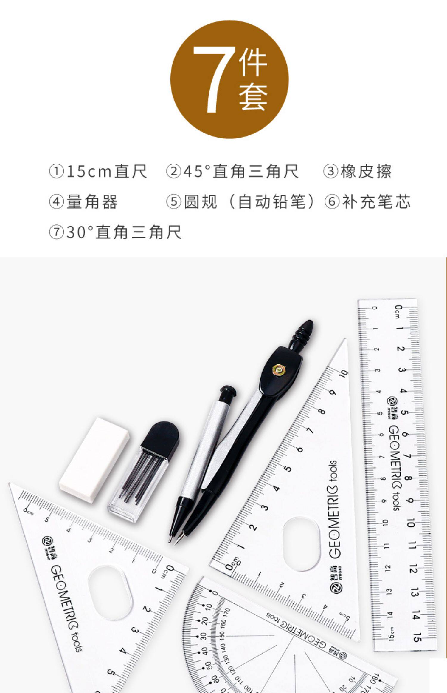 Комплект, набор инструментов для школьников и студентов, канцтовары, универсальная линейка, 7 шт