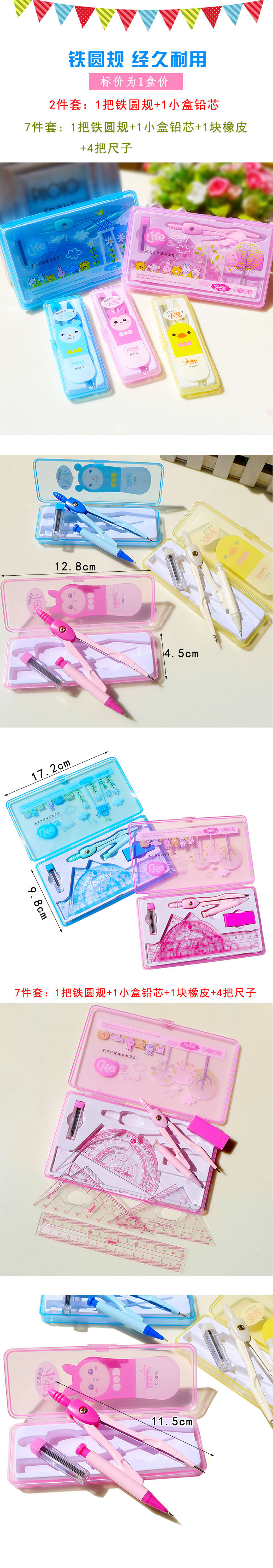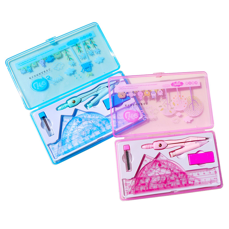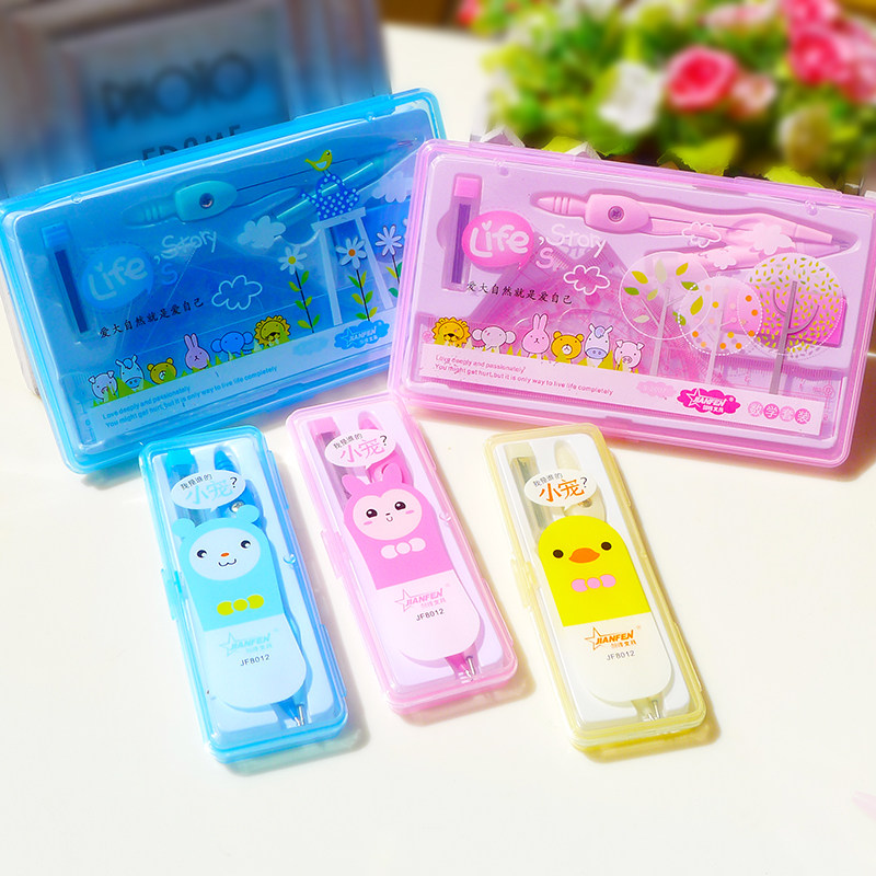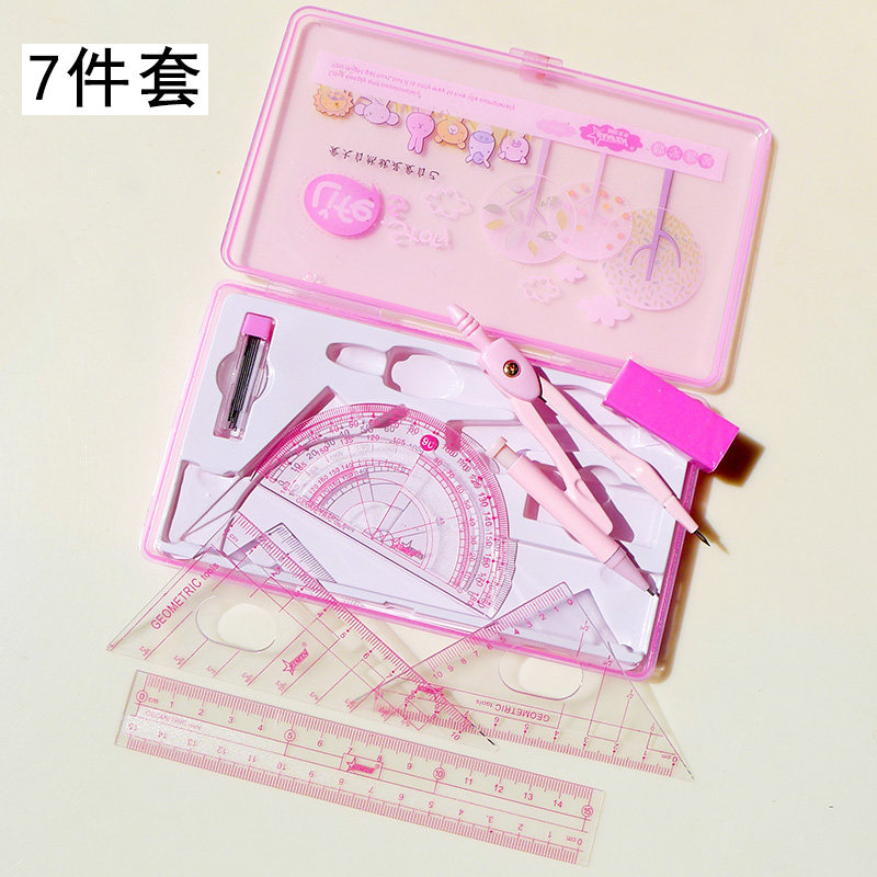 Креативный геометричный металлический мультяшный милый комплект для школьников и студентов для обучения математике, линейка
