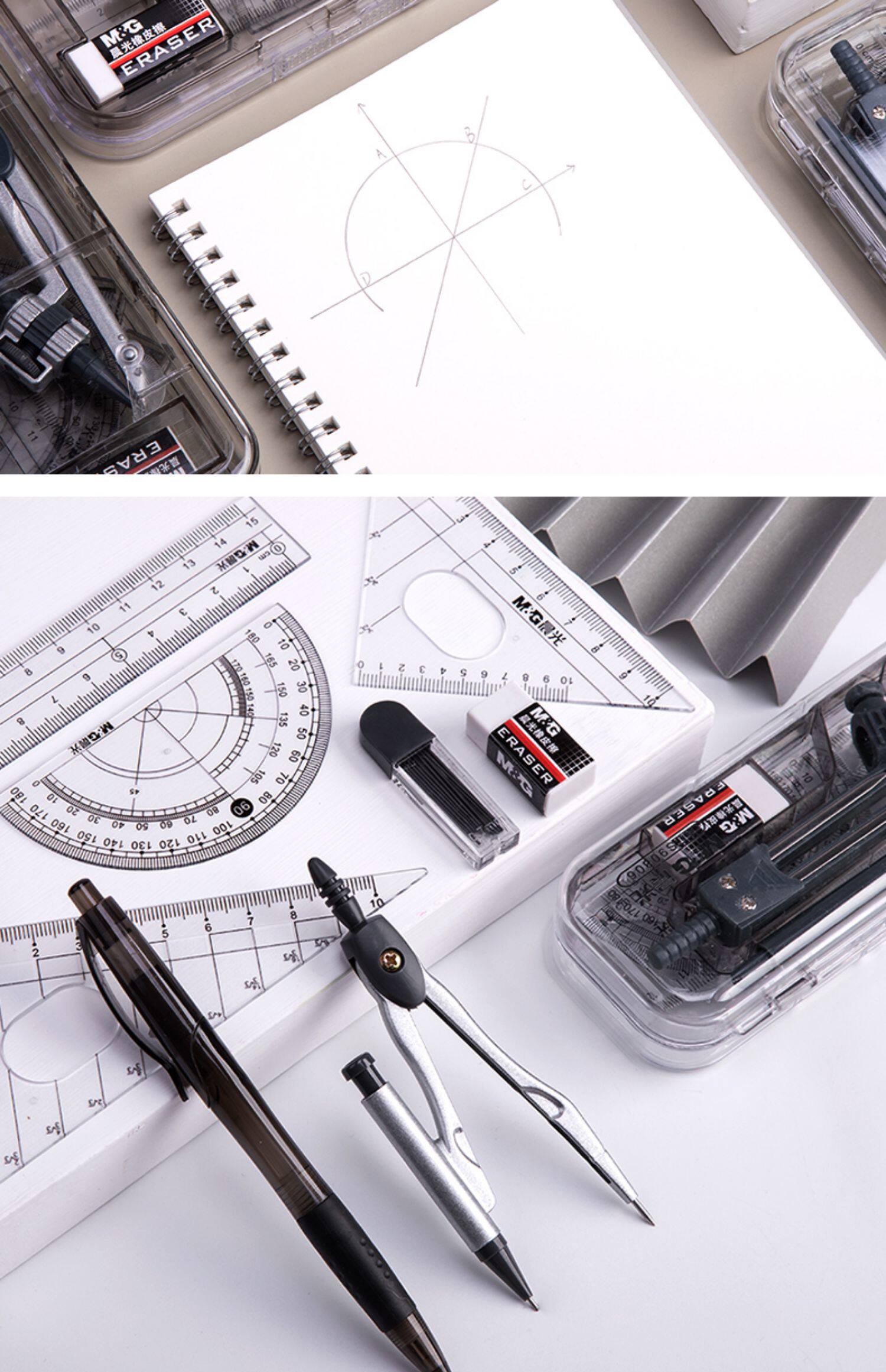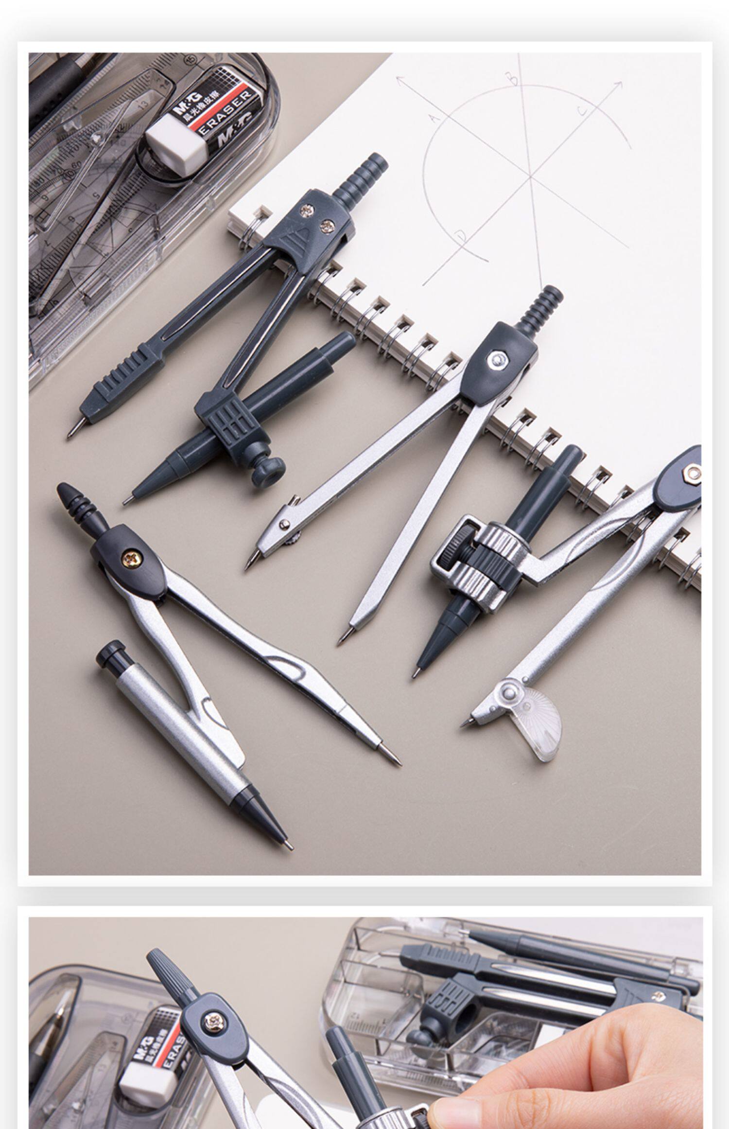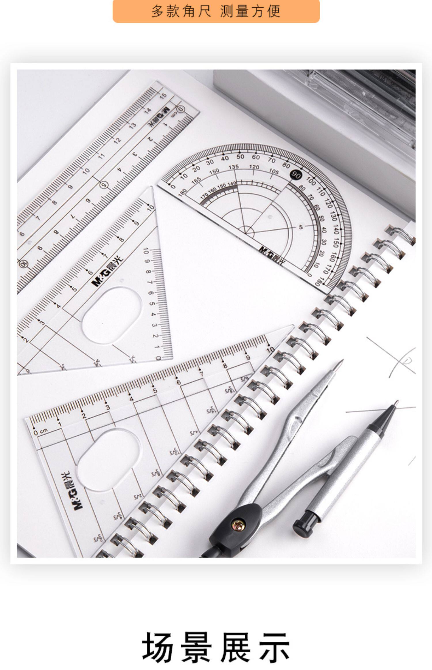 Комплект, металлическая универсальная милая автоматическая профессиональная механическая линейка для школьников и студентов из нержавеющей стали, для средней школы