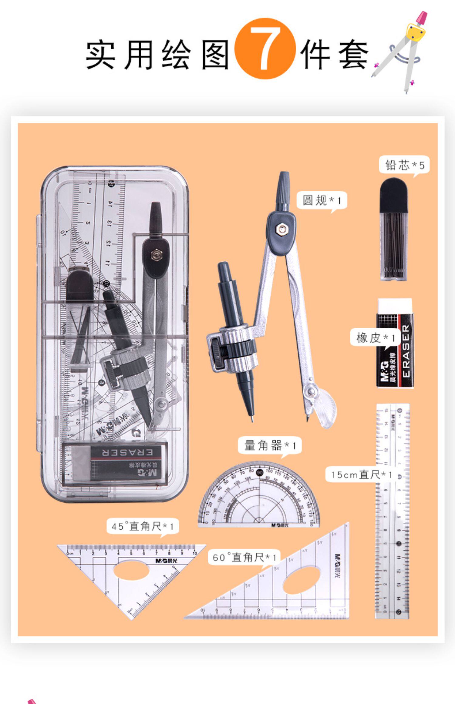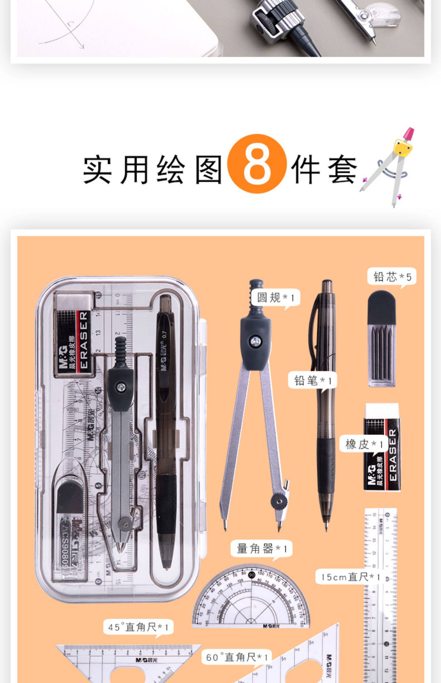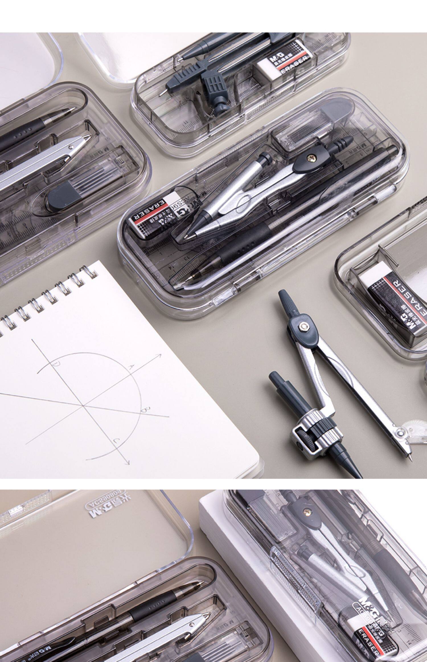 Комплект, металлическая универсальная милая автоматическая профессиональная механическая линейка для школьников и студентов из нержавеющей стали, для средней школы