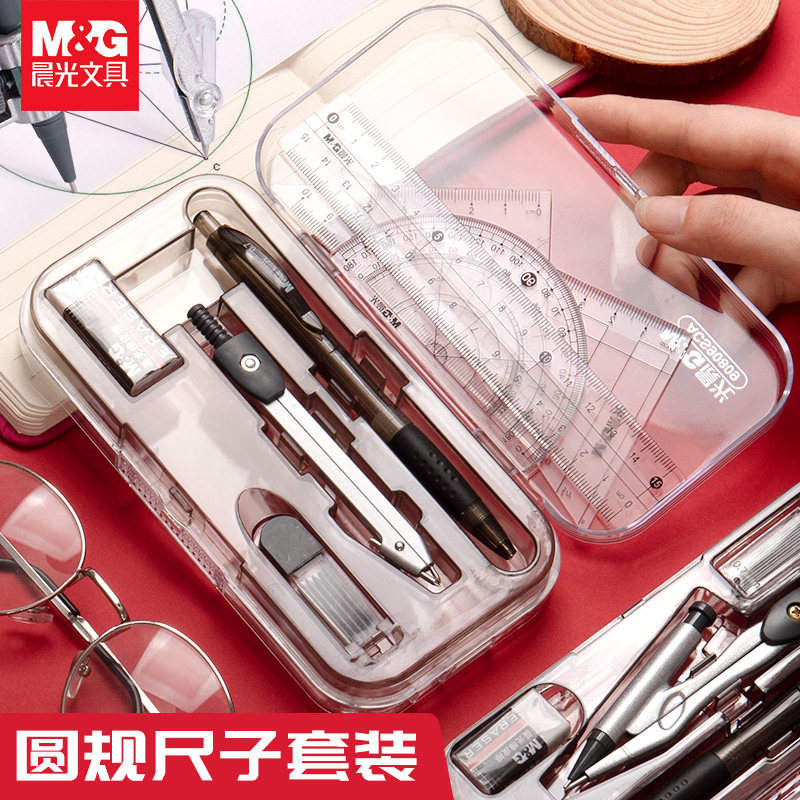 Комплект, металлическая универсальная милая автоматическая профессиональная механическая линейка для школьников и студентов из нержавеющей стали, для средней школы