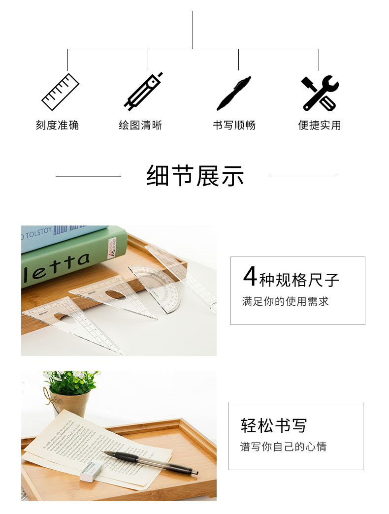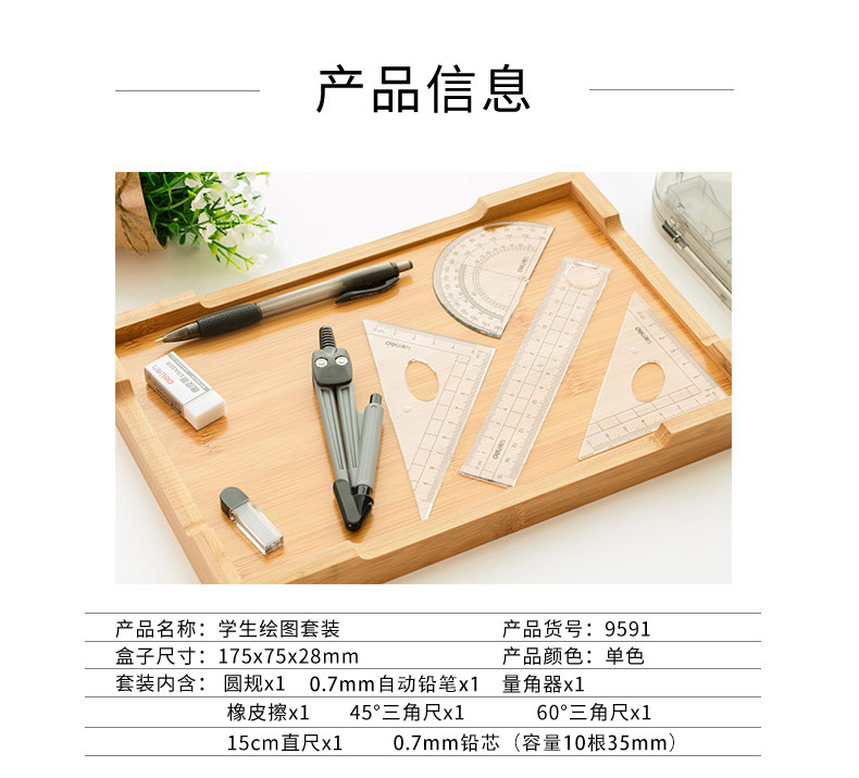 Deli 9591 Круглый правитель Ulk Set Test Engineering Technology Ruge Rules Ruless Установите учащихся с многофункциональными правилами округа Junior School Schools Test Test Bringship