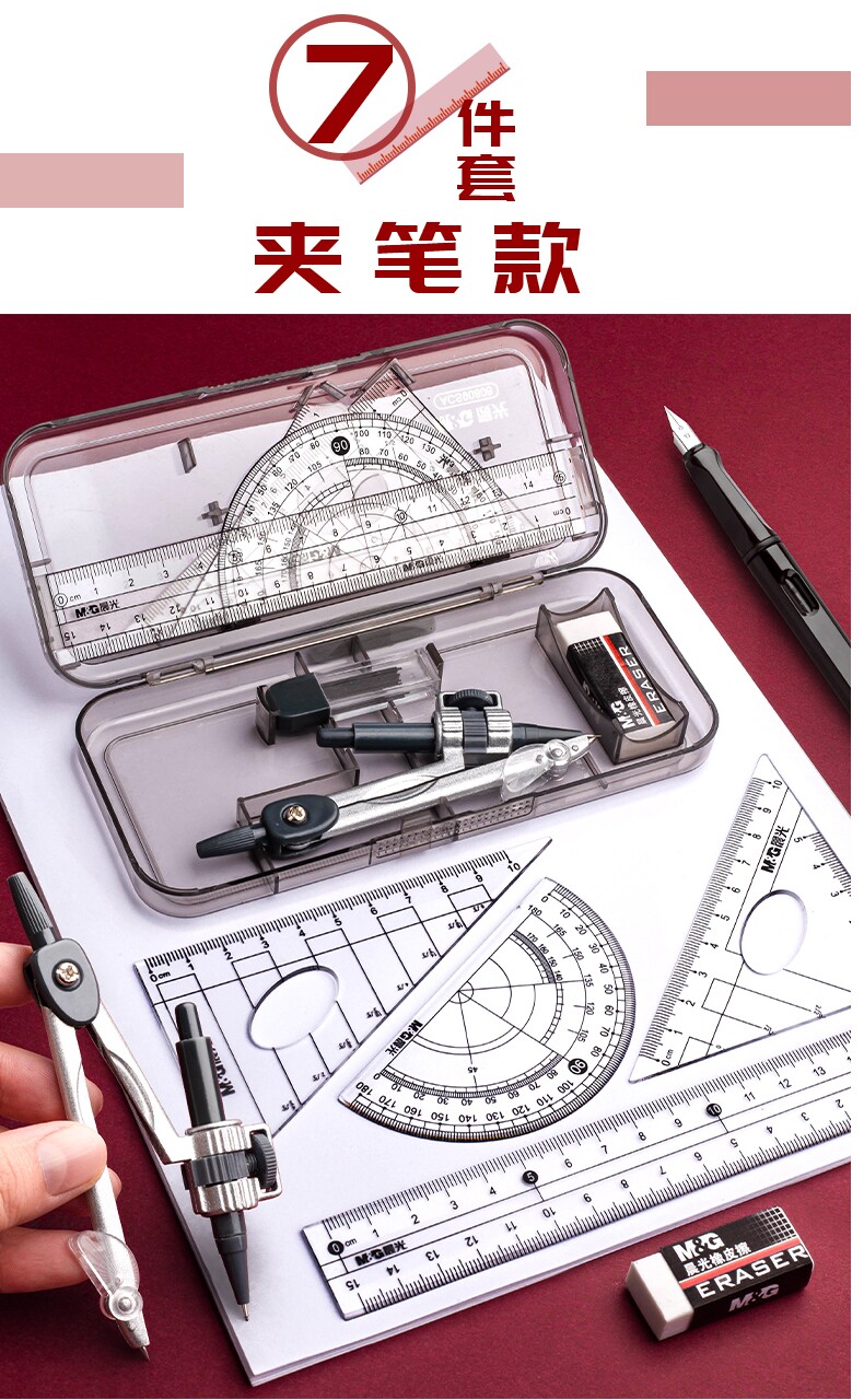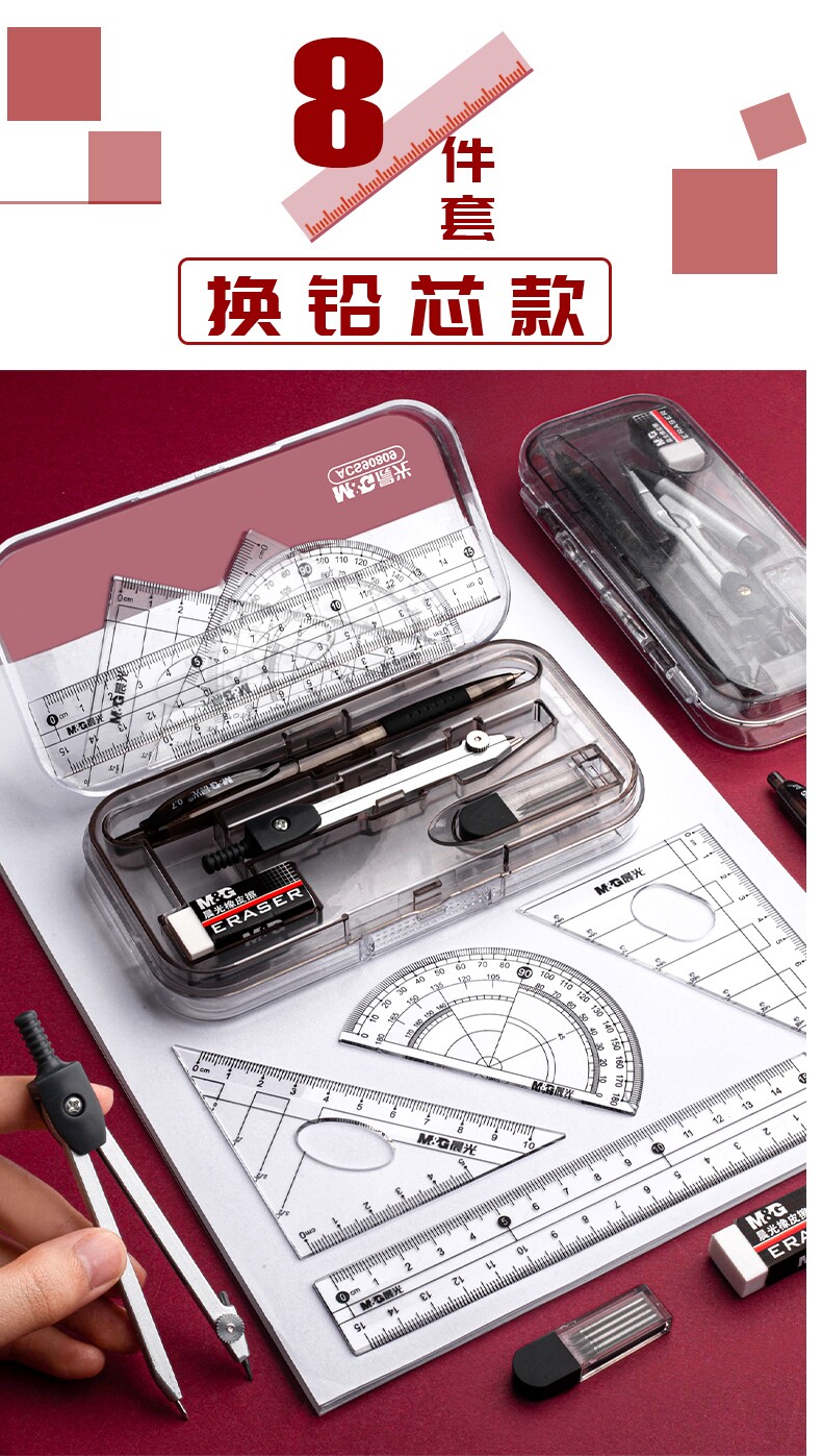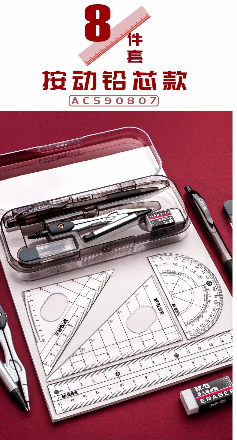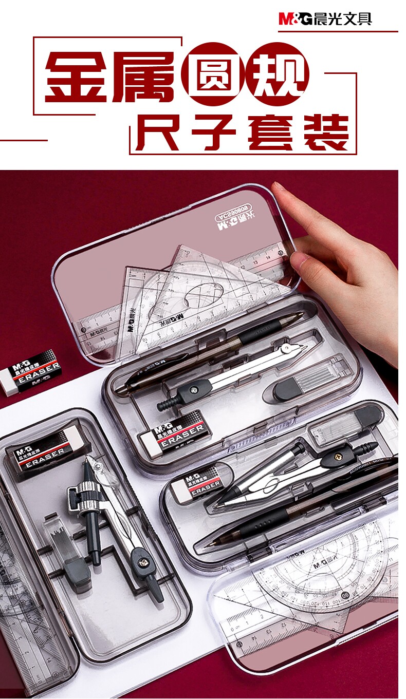 Комплект, универсальная милая профессиональная механическая линейка для школьников и студентов из нержавеющей стали, для средней школы