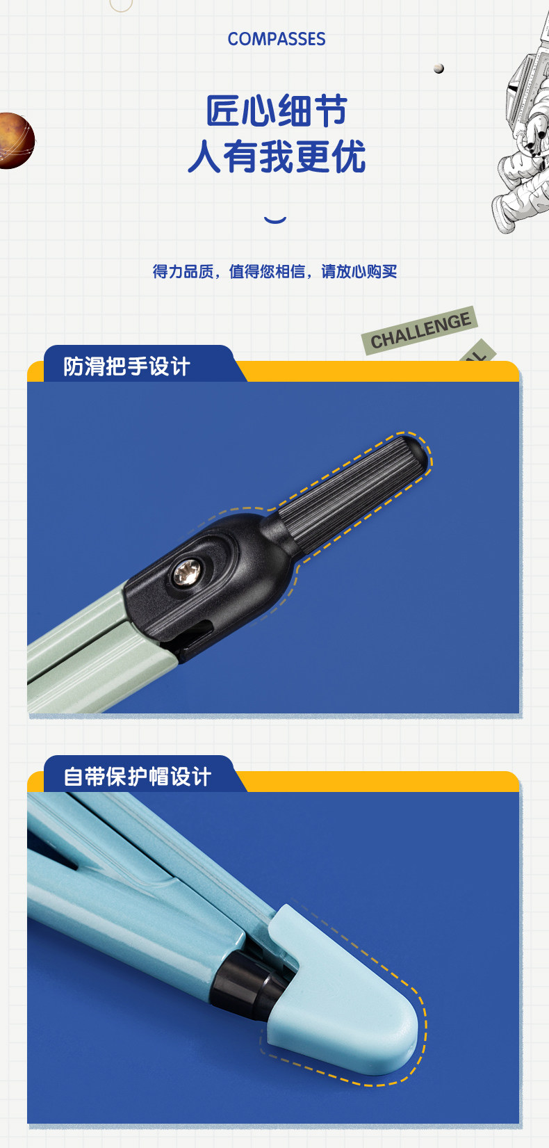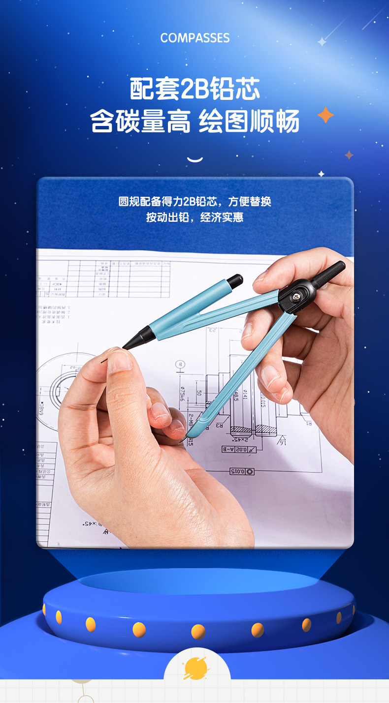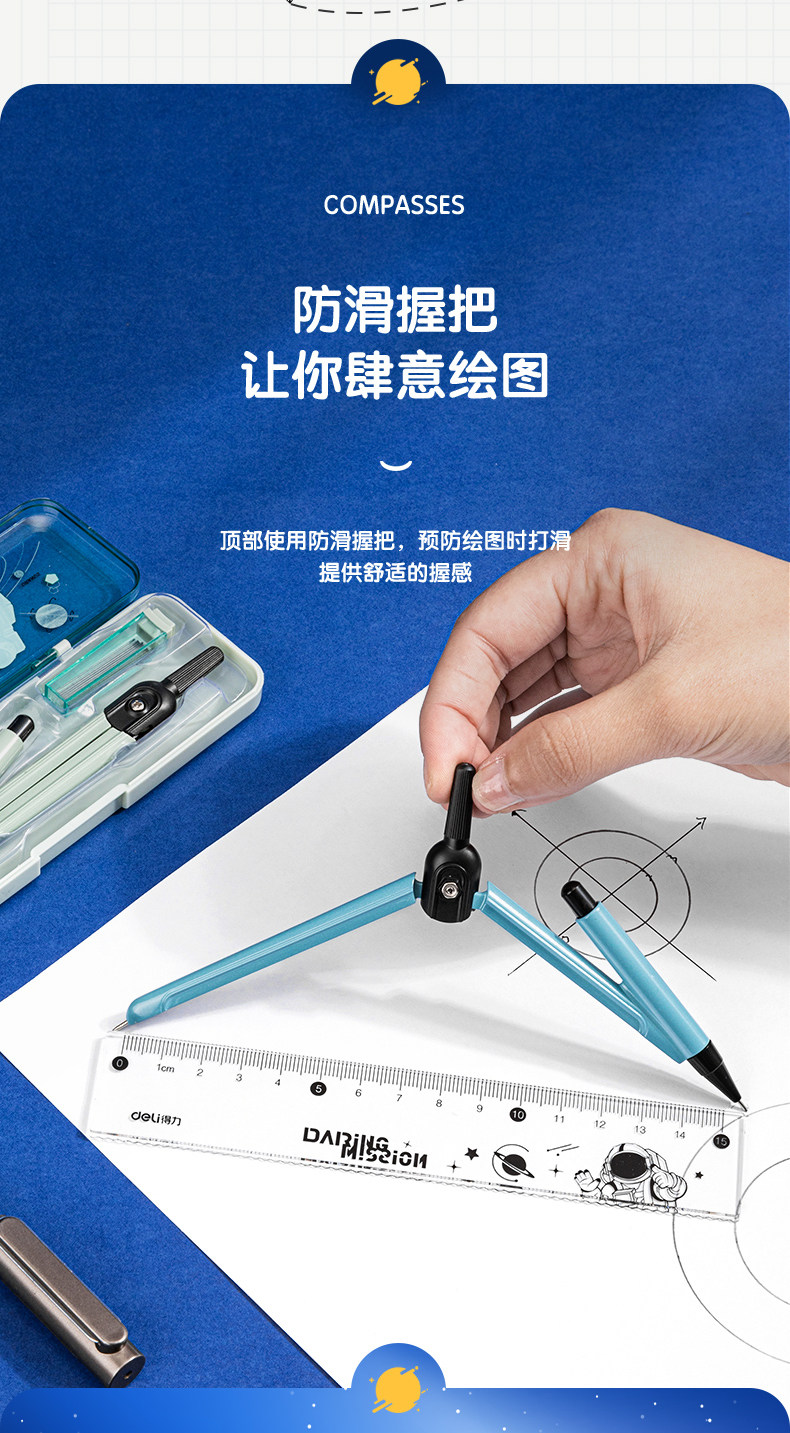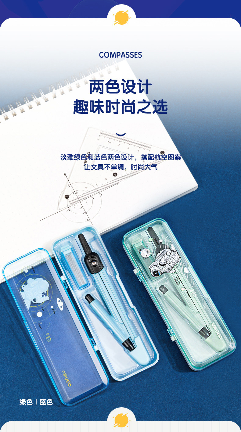Учащиеся Deli Compass используют профессиональные инструменты для рисования для детей милые многофункциональные заправки.