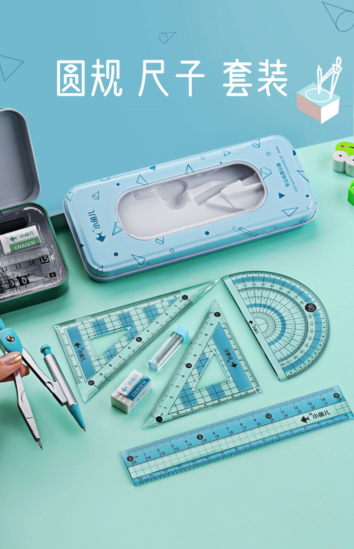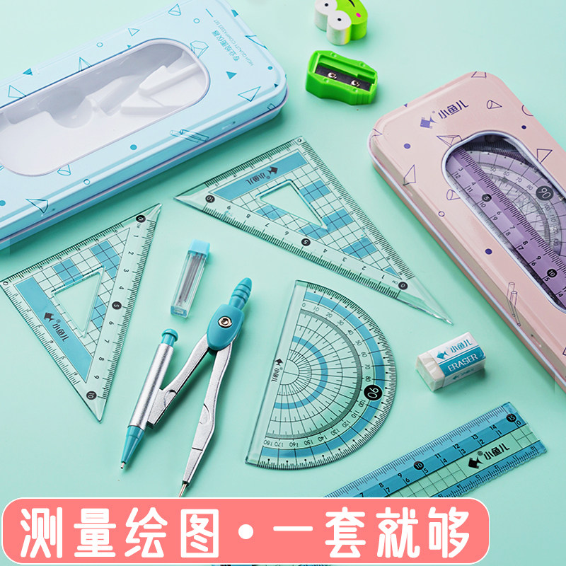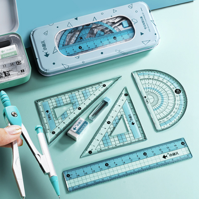 Линейка, милый комплект, универсальные металлические обучающие канцтовары для школьников и студентов, для средней школы