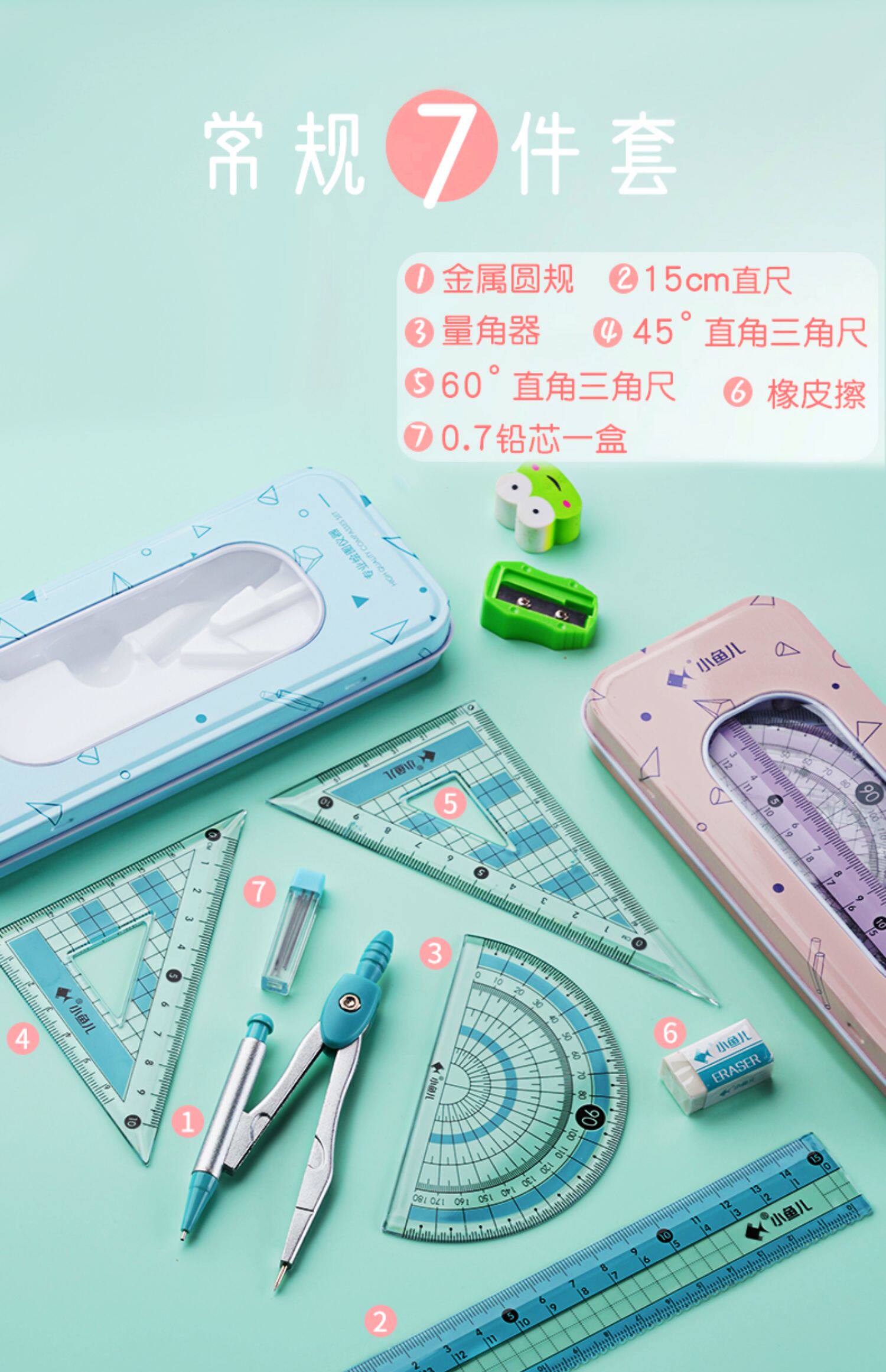 - Ruler / Pink / 7 -Piece Set -test Set Set