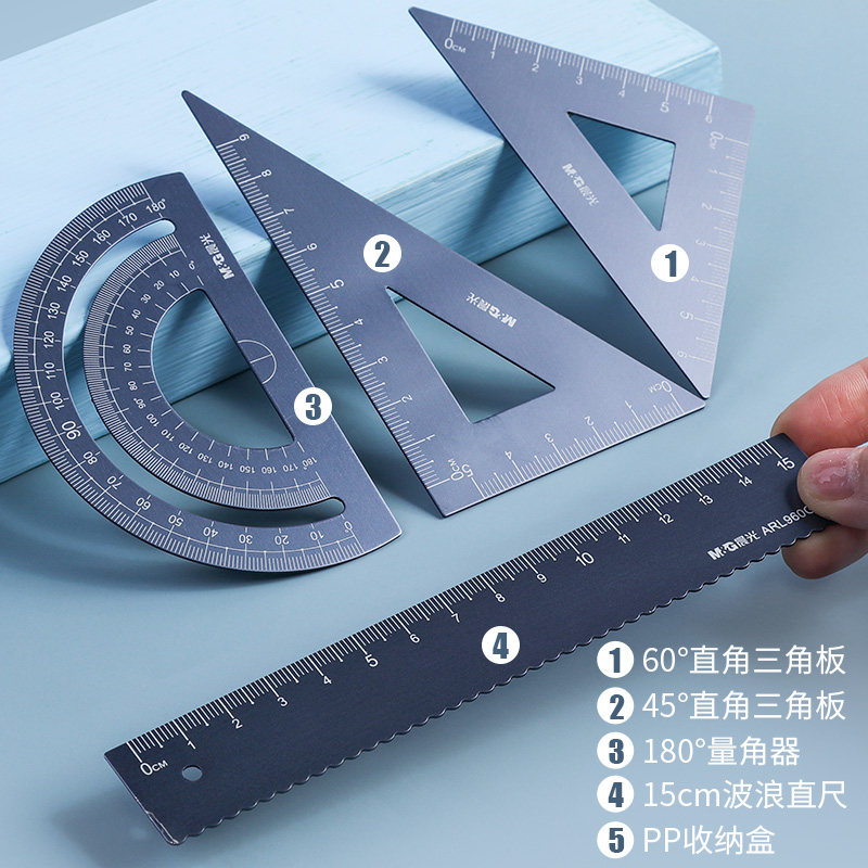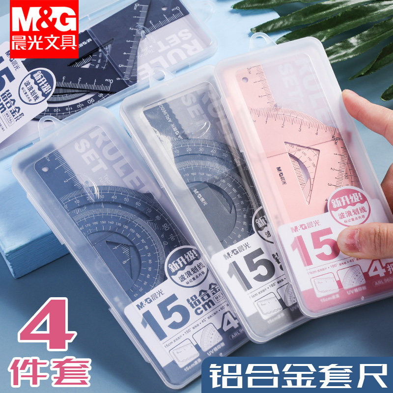 Металлическая линейка, металлический волнистый детский универсальный комплект для школьников и студентов, алюминиевый сплав, 4 предмета, японские и корейские