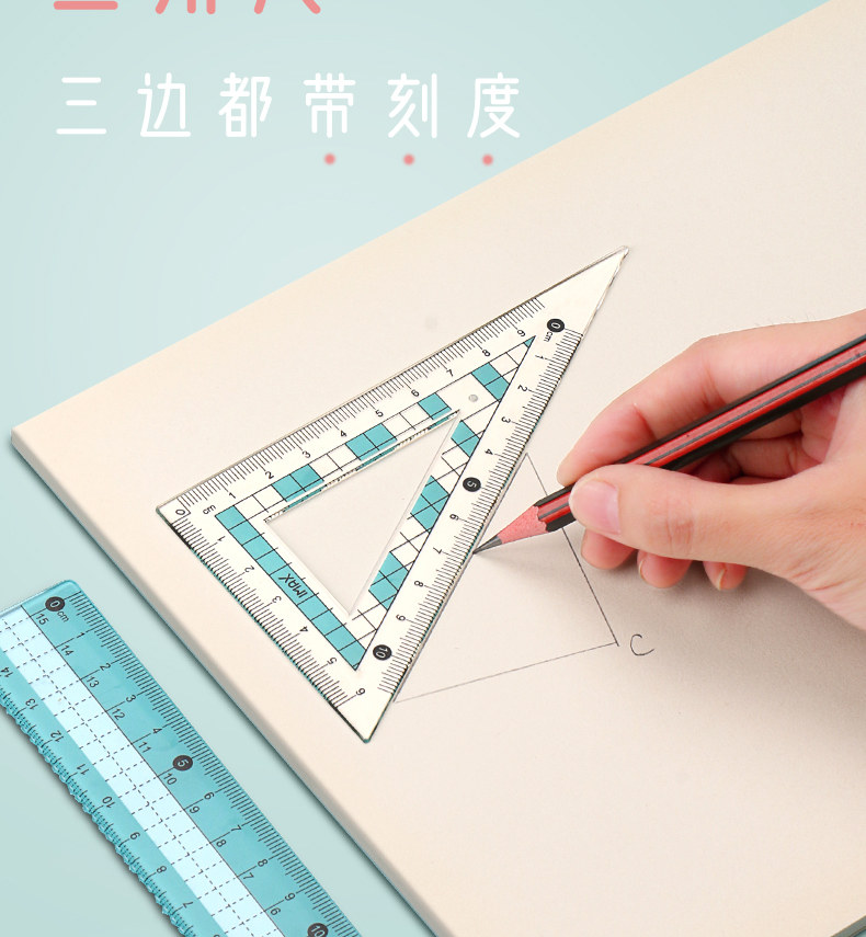 Комплект, прозрачная универсальная линейка для школьников и студентов, детские обучающие канцтовары, для средней школы