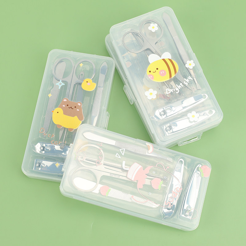 Мультяшная коробка для ногтей, комплект, высококлассные маникюрные кусачки, ухочистка, ножницы