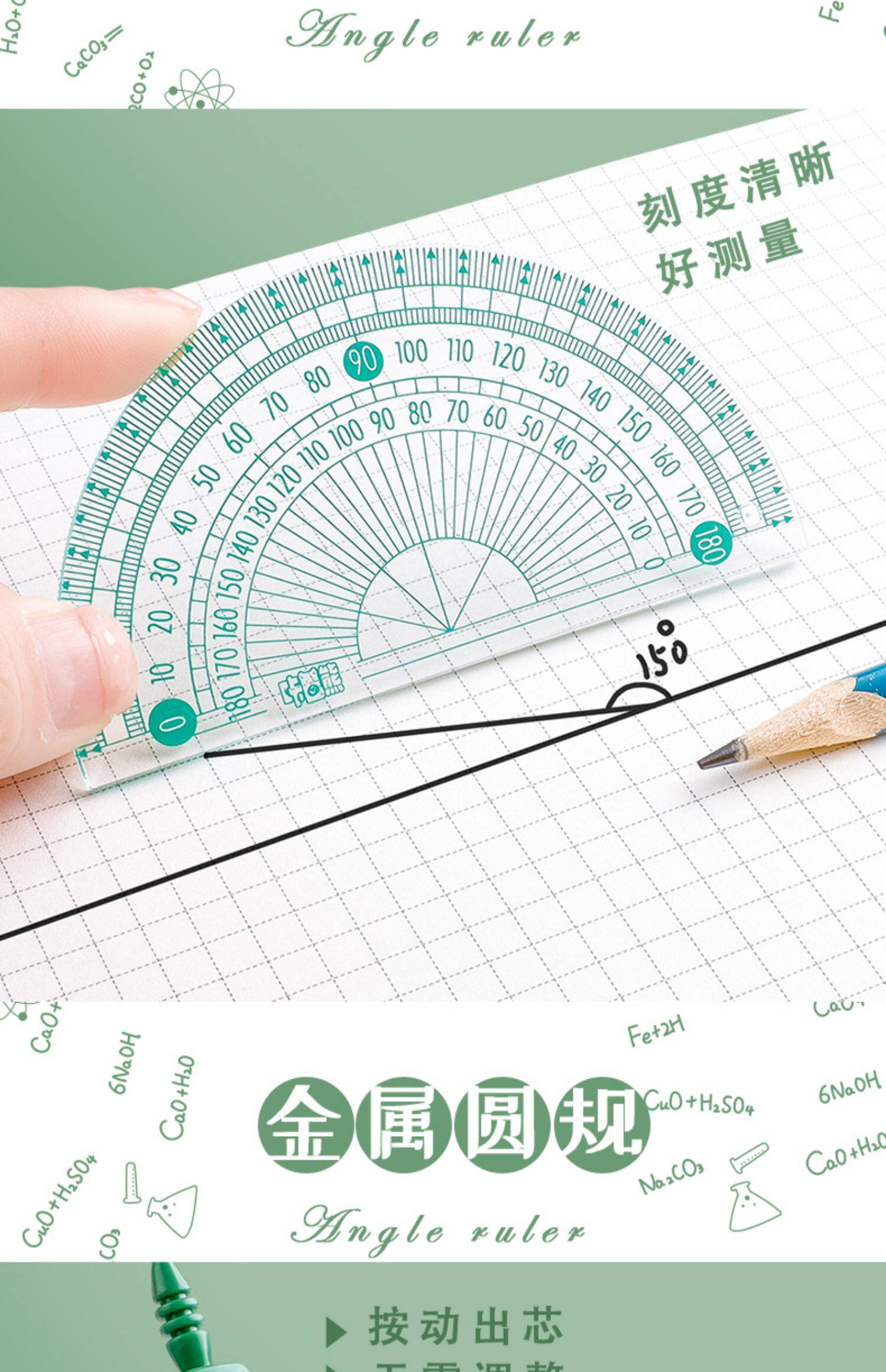 Линейка, милый комплект для школьников и студентов, универсальные обучающие металлические канцтовары, для средней школы