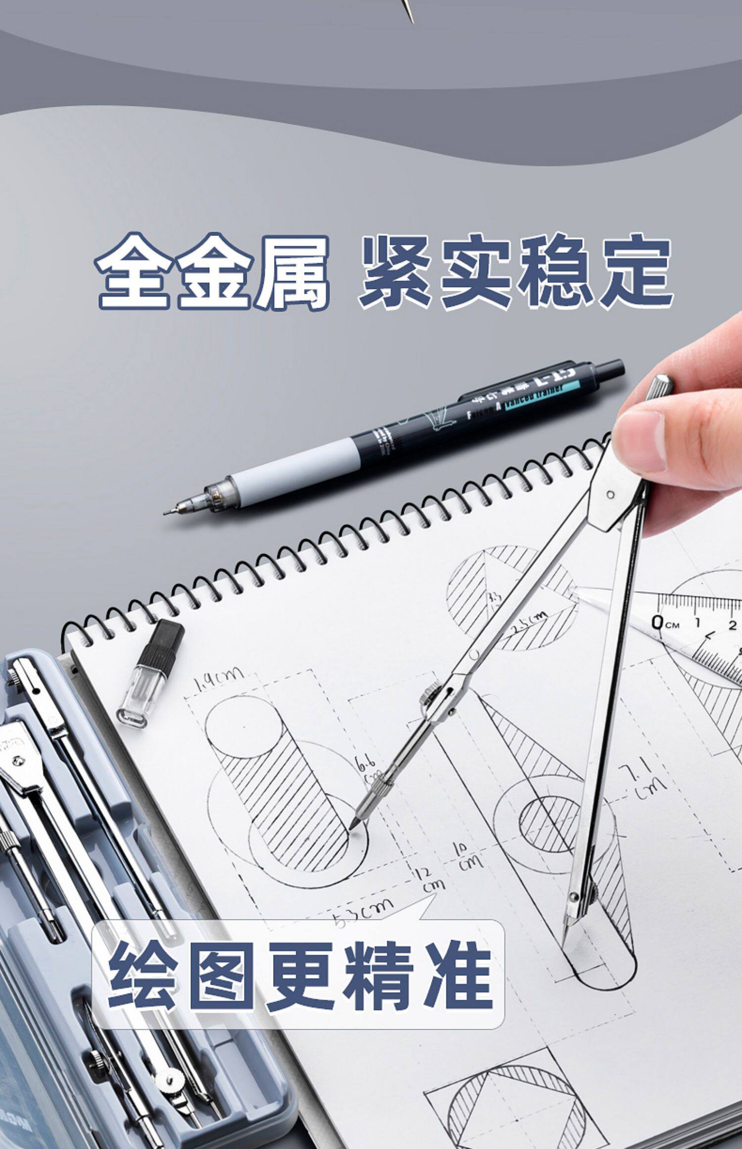 Ченгуанг металлический циркуляр профессиональный рисунок ученики ученики с использованием набора для замены ручки ядра HB HB Core Junior School Schoods для вступительного экзамена средней школы могут рисовать рисование, инструмент для механического рисования