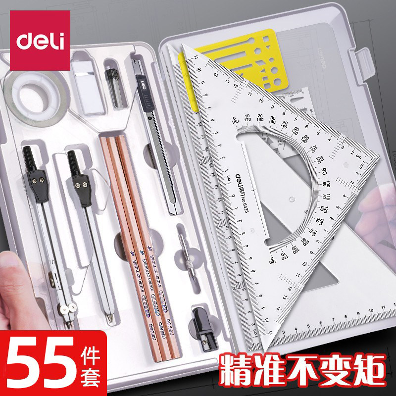 Deli Construction Machinery Matchinery Metropolis Drawing Инструменты рисование профессиональное рисование для рисования инструменты набора колледжа Студент Студент Круглый металл Практический пакет правил инструментов