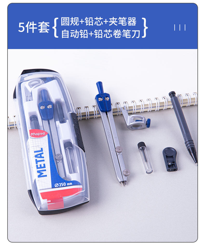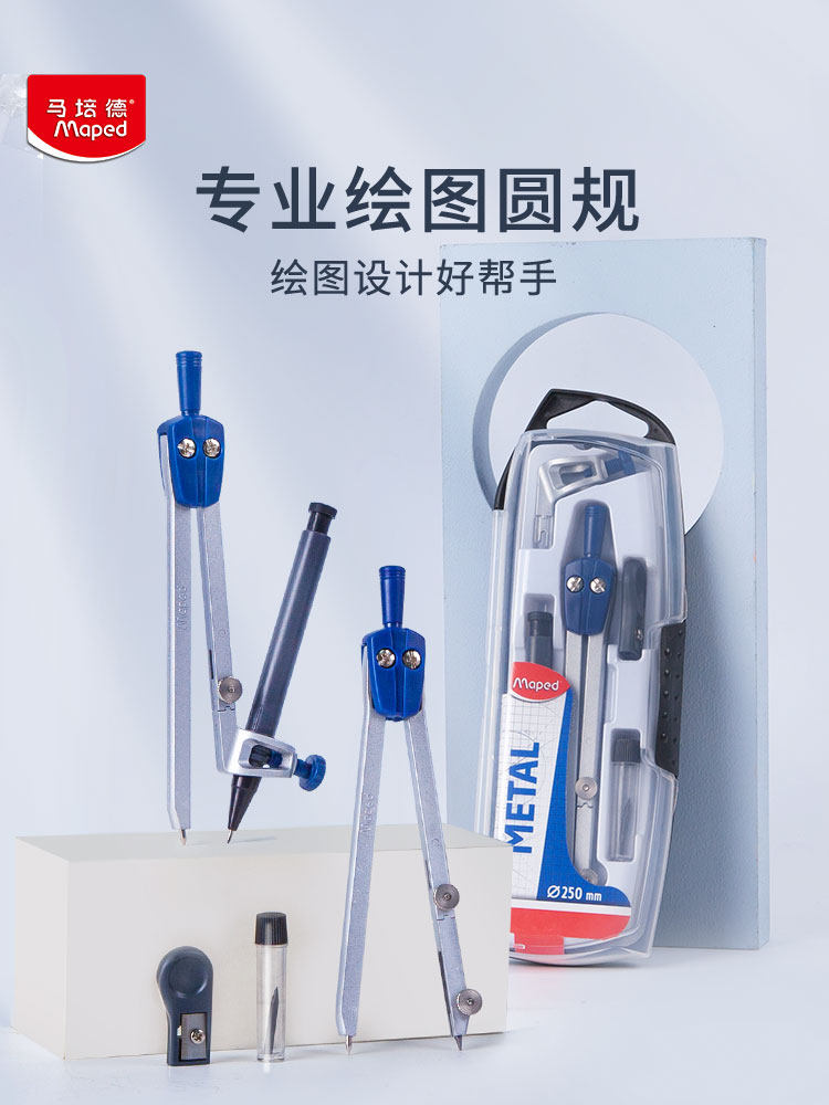 Французский студенческий кружок Maper Set Set Профессиональные инструменты рисования могут быть использованы для составления круглых правил. Учащиеся используют учеников старших классов и учащихся начальной школы с многофункциональным инструментом тестирования металлу