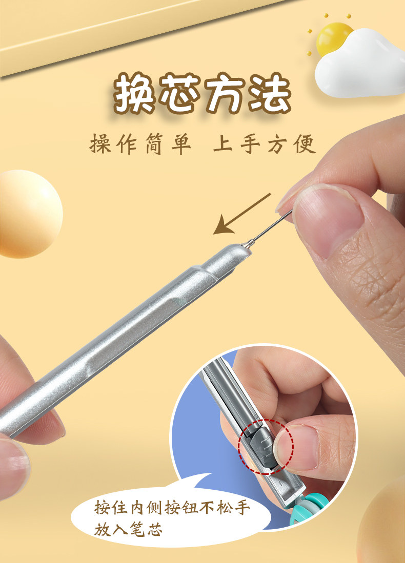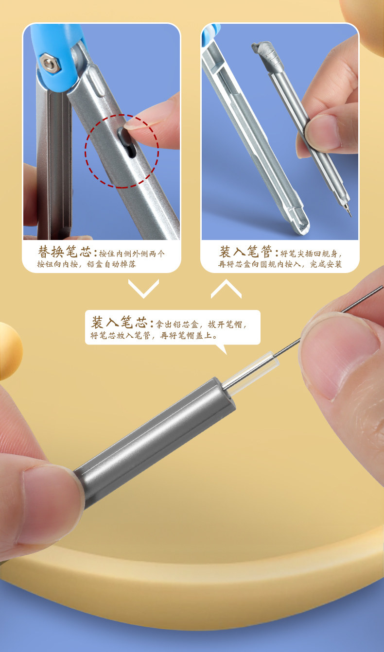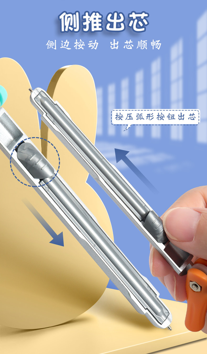 Ченгуангюаньская ручка формирует форму студента ученика средней школы Специальная средняя школа 2B Circle Автоматическое карандаш заменил ядро рисунка с ядром ручки в соответствии с Moving Metal Multifunctional Type Type Round Ruler Set