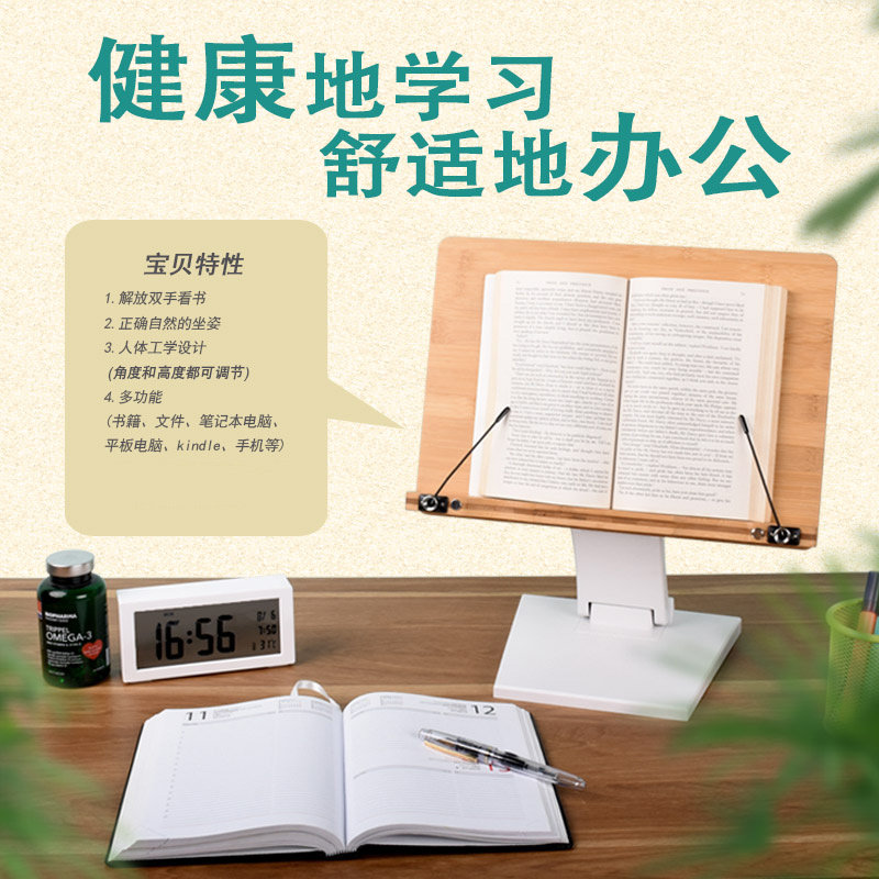 Большая регулируемая книжная полка из натурального дерева, настольное чтение, трубка для школьников и студентов для взрослых для письма