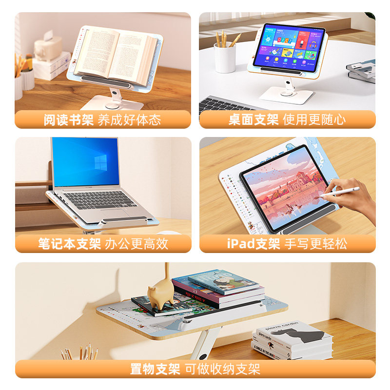 Настольное чтение, детская мультяшная книжная полка из натурального дерева, трубка, обучающая книга с картинками, универсальный крутящийся стенд, фиксаторы в комплекте