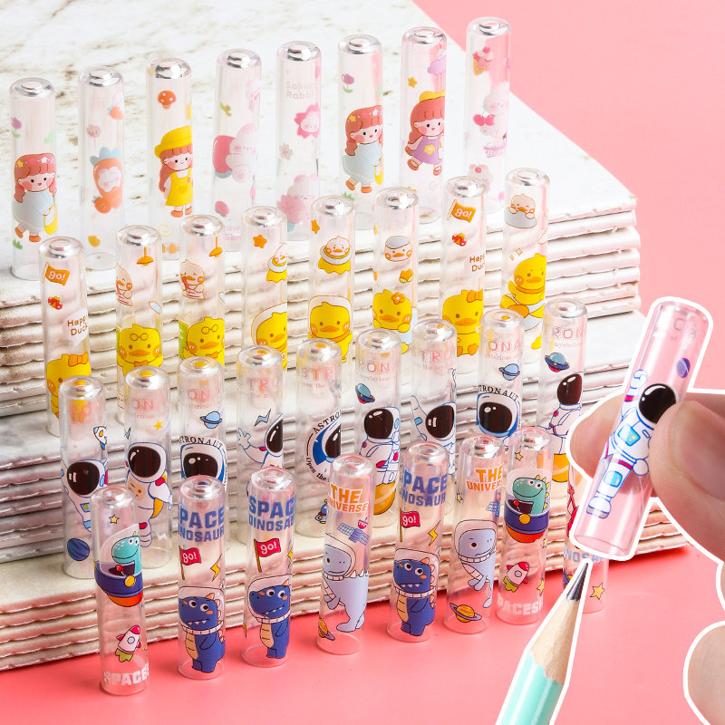 Карандаш, защитный чехол, мультяшная защитная детская милая крышка для школьников, креативный длинный комплект, ластик