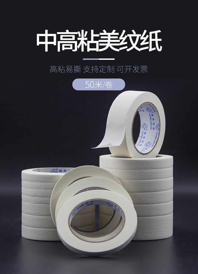 Красота -Пантированная бумажная лента Большой рулон 50 метров краски с полной коробкой автомобильной краски, чтобы покрыть стену украшения без швейного швения красоты.