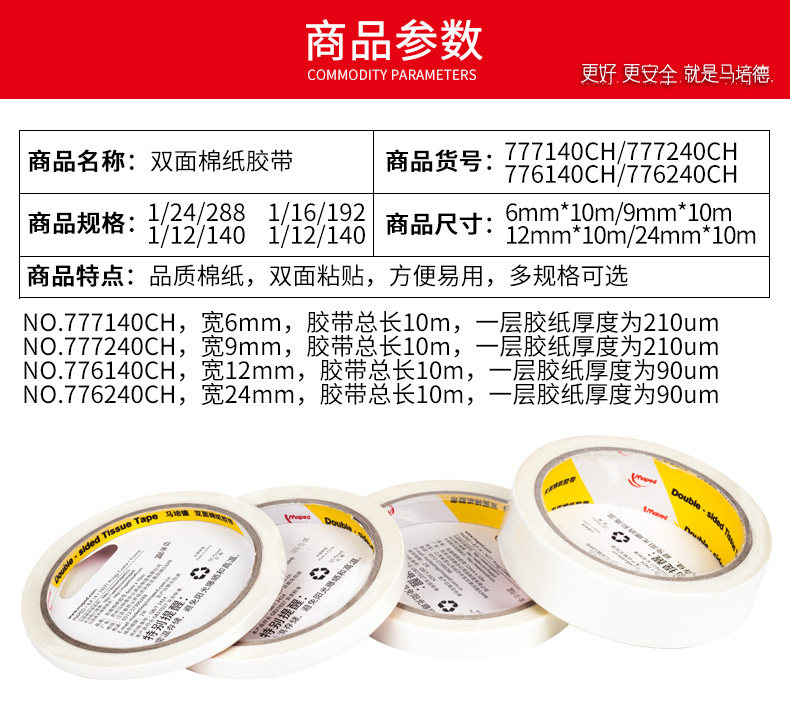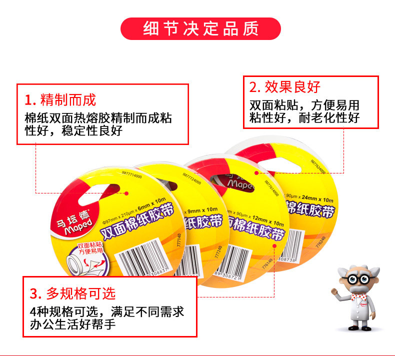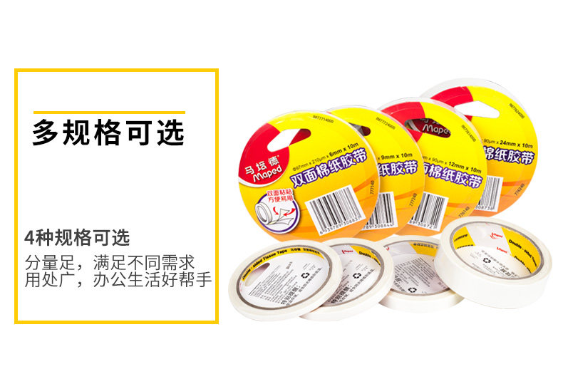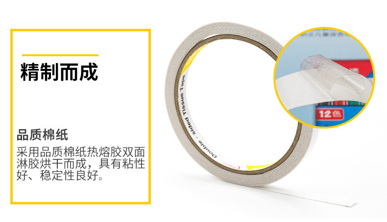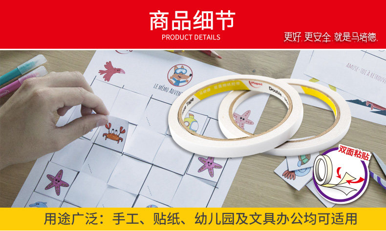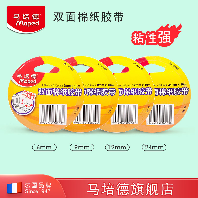 Двусторонний скотч, двусторонная бумажная лента, детские канцтовары, прозрачный клей, Франция, 6/9/12/24мм