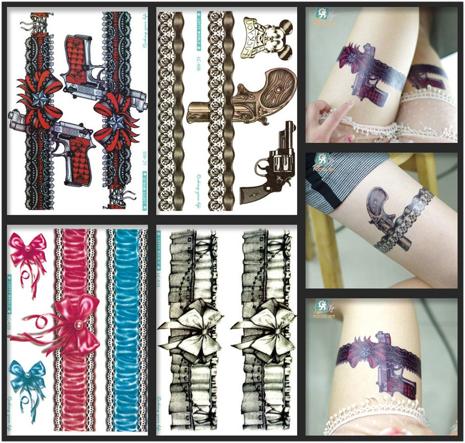 Latest Beauty&Модные временные наклейки с татуировкой тела большие галстуки с кружевным пистолетом Черный красный наклейки с татуировкой для леди.