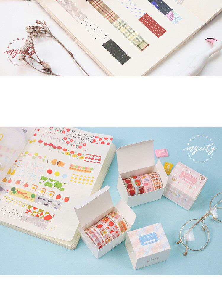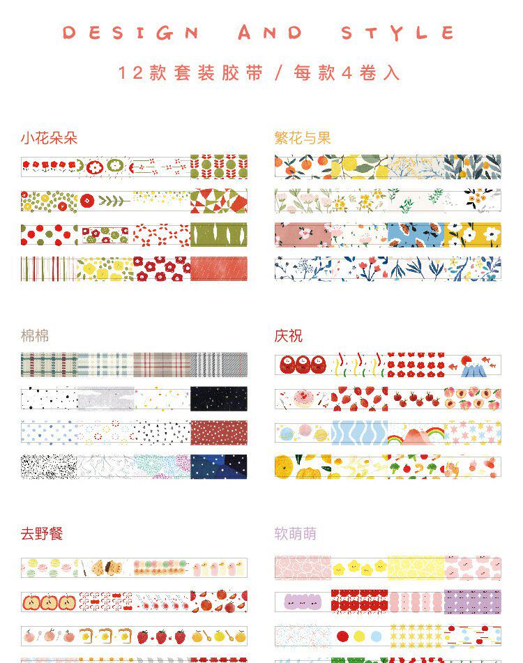 Милый коллаж и бумажная лента, сумка, красочная пленка с принтом, материал сумки, фон, декоративная наклейка, набор из 4 рулонов
