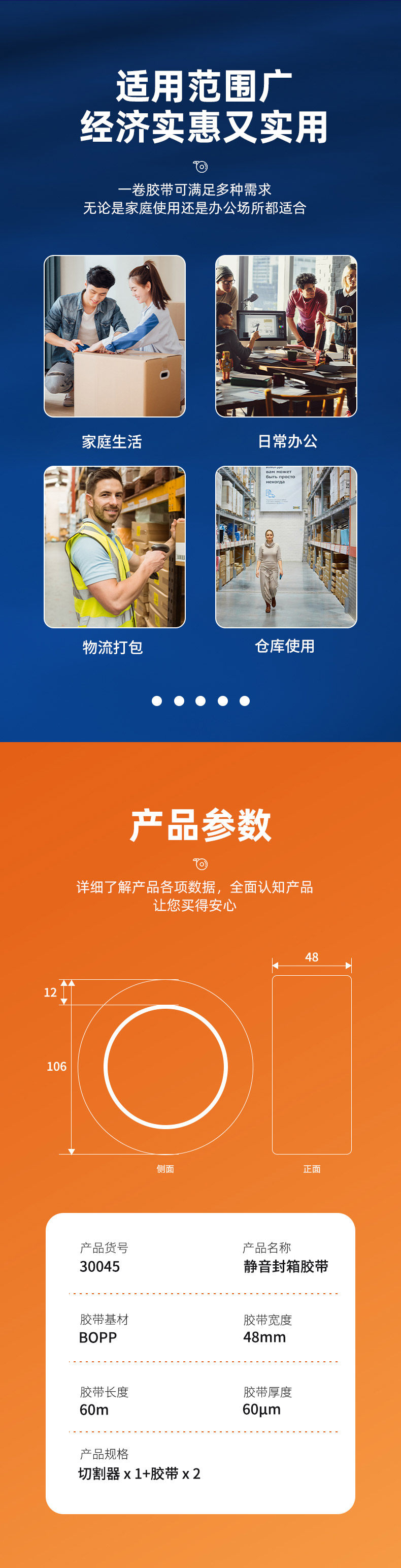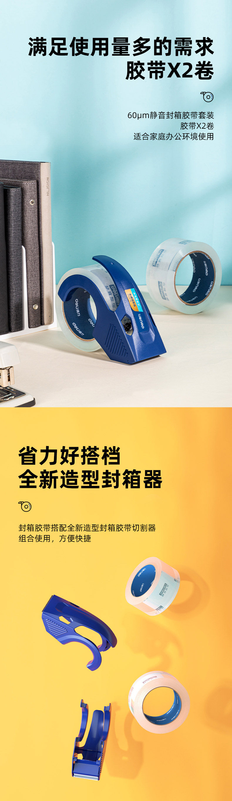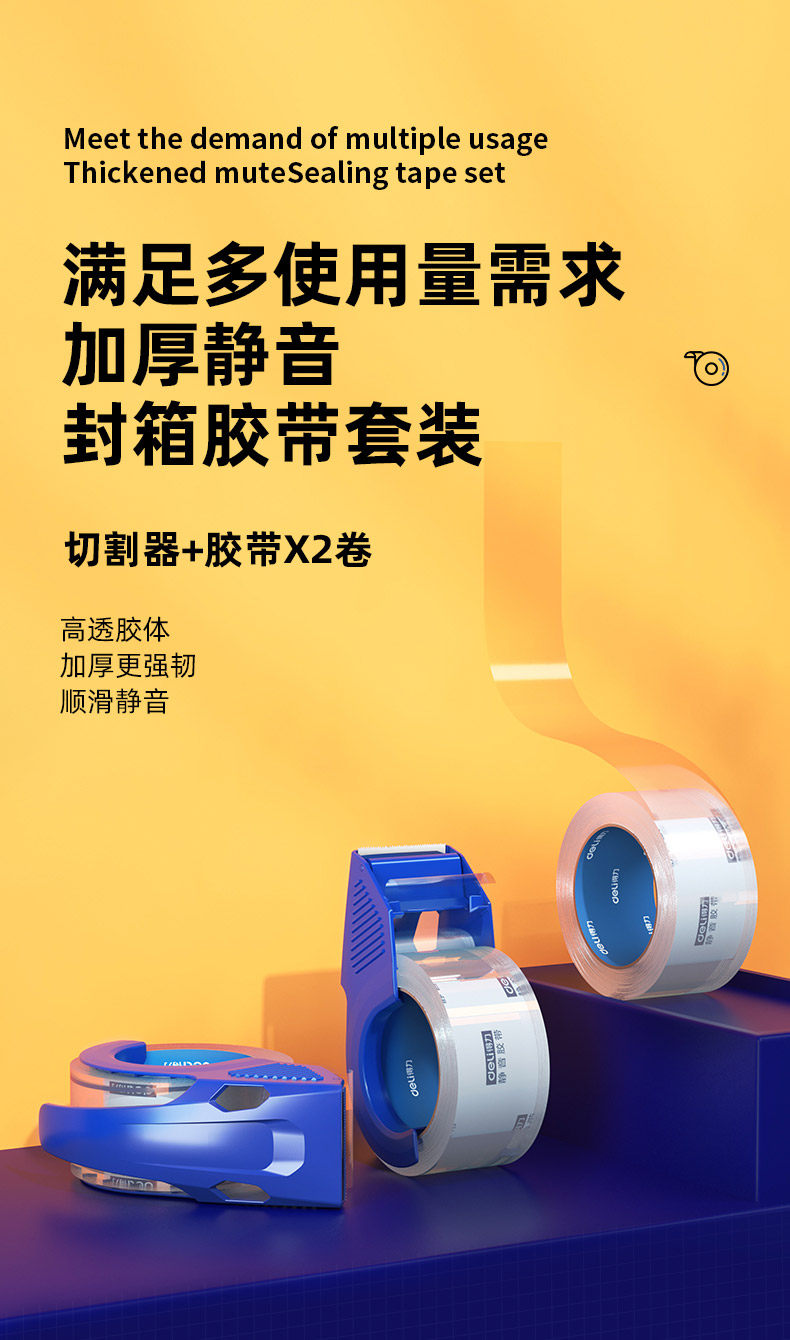 Deli Deli Power Office Набор тихой коробки с набор с покрытием корпус 48 мм*60 м высокой вязкости 30043 Высокая бесшумная лента упакован