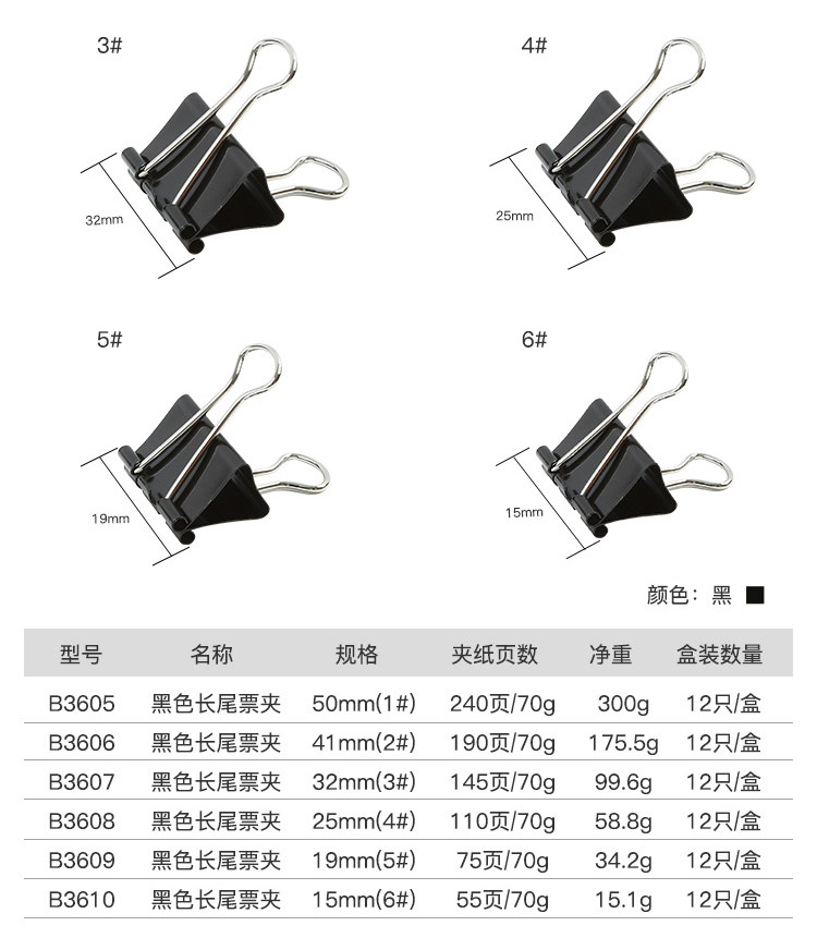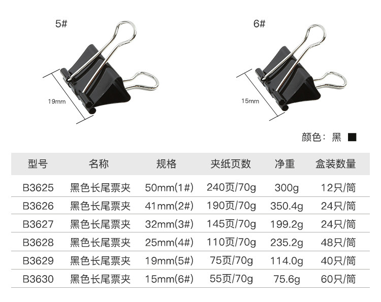 Черные большие металлические канцтовары для документов, фиксаторы в комплекте, 19мм, 25мм, 15мм