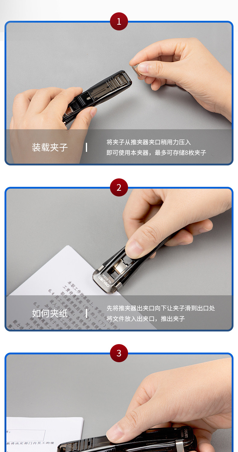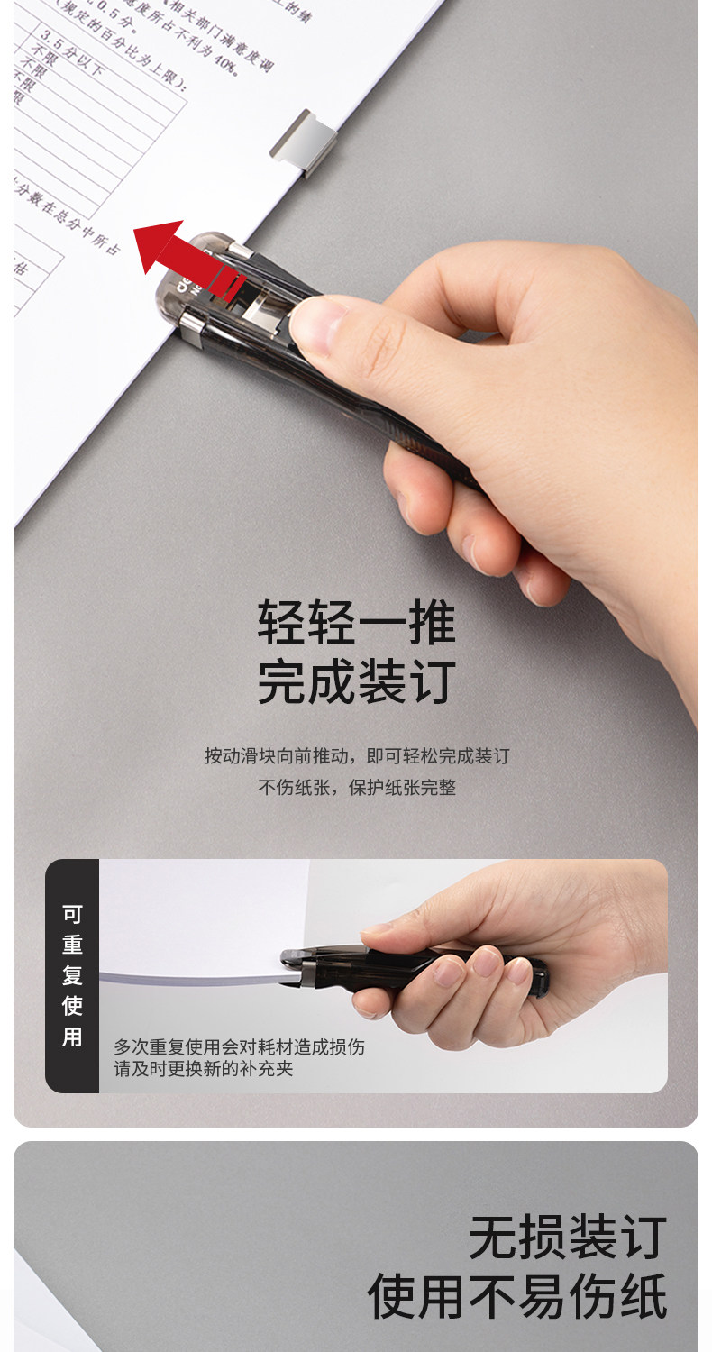 Deli Pusher Student использует тестовую бумагу для хранения металлического толкателя крупные артефактные бумаги для организации фиксированного клипа. Фиксированный клип.
