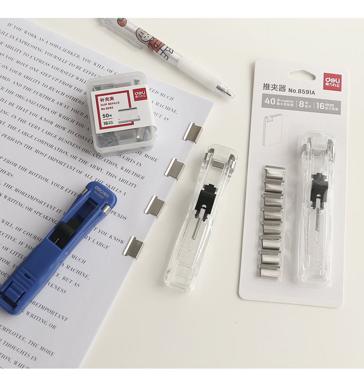 Фиксация фиксации добавки Deli Pusher. Это помогает зажиму простого папки папки с папкой для ветер