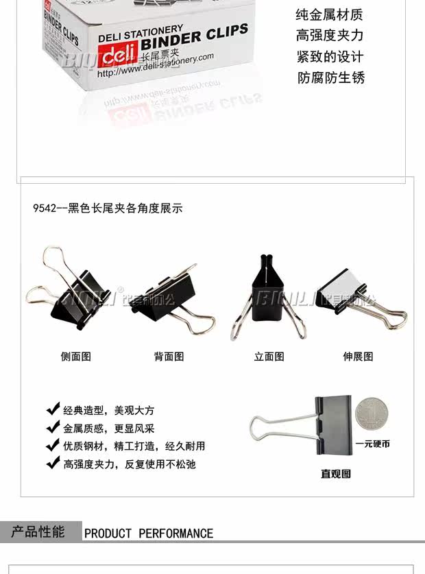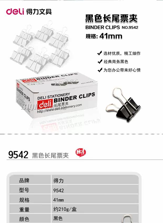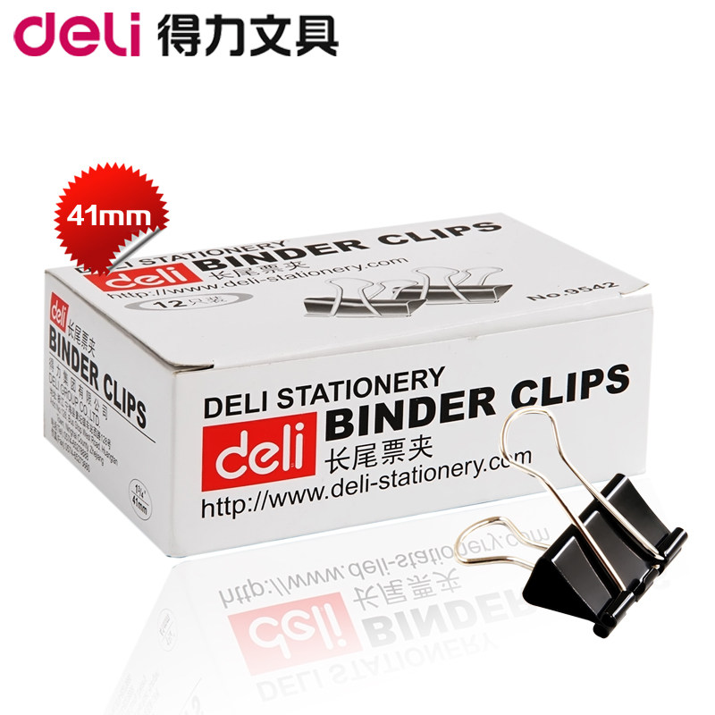 Deli Long Hail Clip 41 мм 9542 Черный хвостовой платок с длинной хвостовой волоконной папкой 12 \ Коробка аутентично