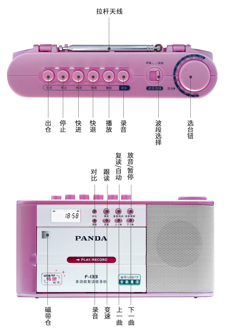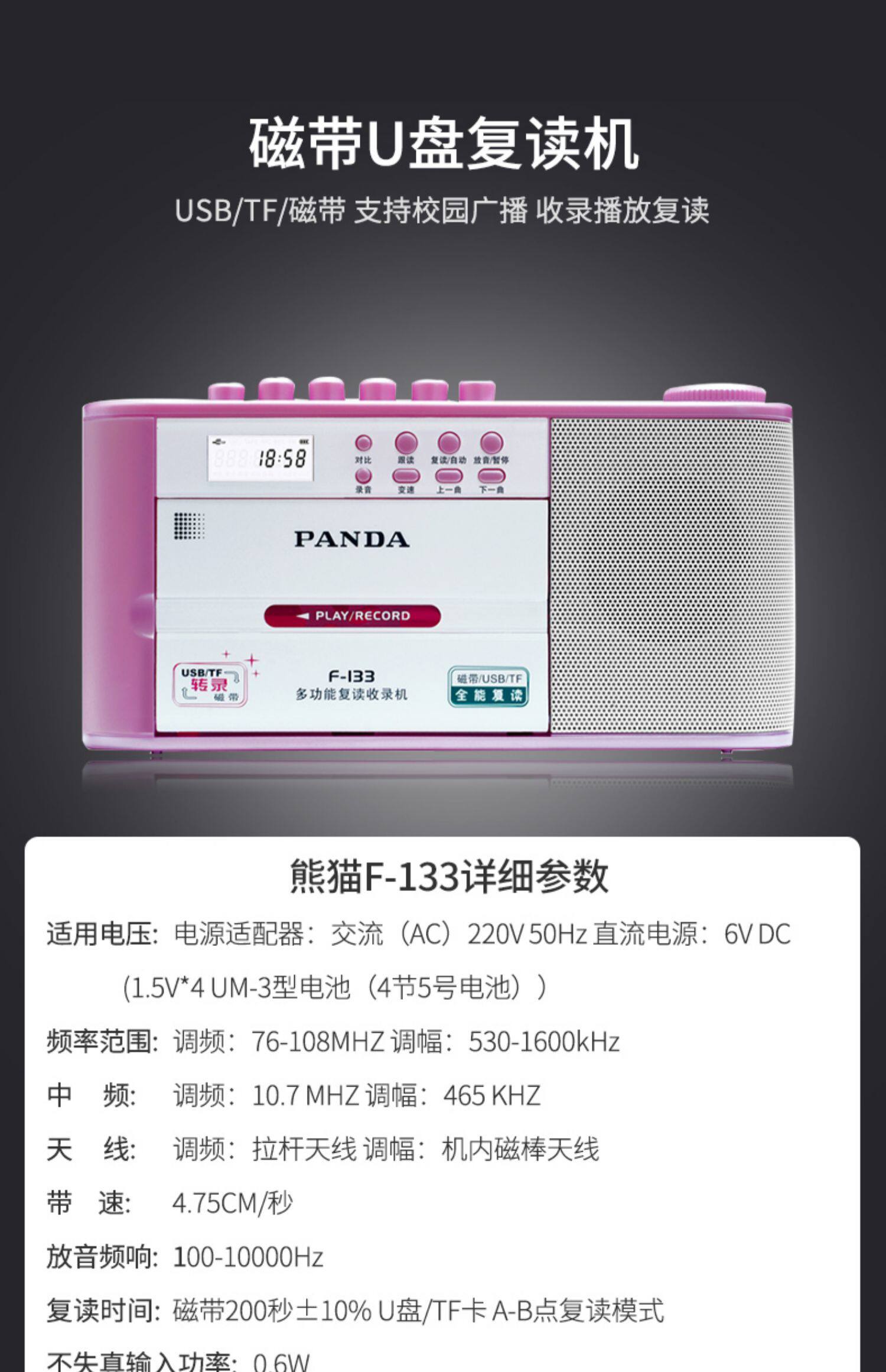 Panda F133 Записывающая магнитная машина старой стиль ностальгического воспроизведения дома может быть размещена, радиочастотное радио