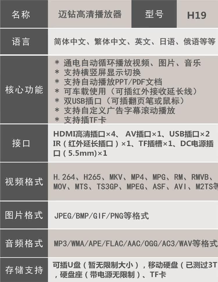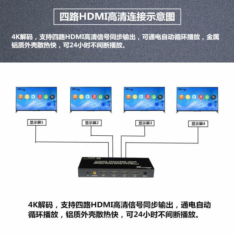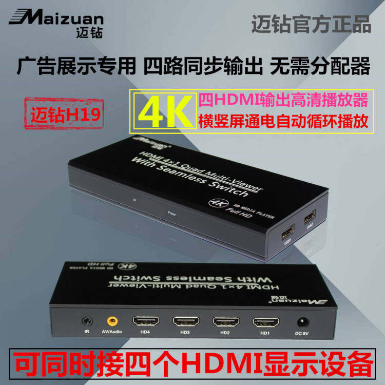 迈钻 H19 Four Road HDMI Supty Scree Advertising Show 4K Power Electric Automatic Vyage Video HD Player