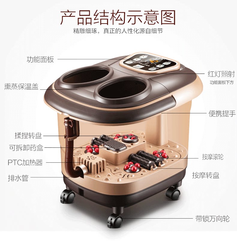 Footbath Foot Bath, автоматическая нагревательная бассейна ног, фумигация, массаж -массаж пузырь