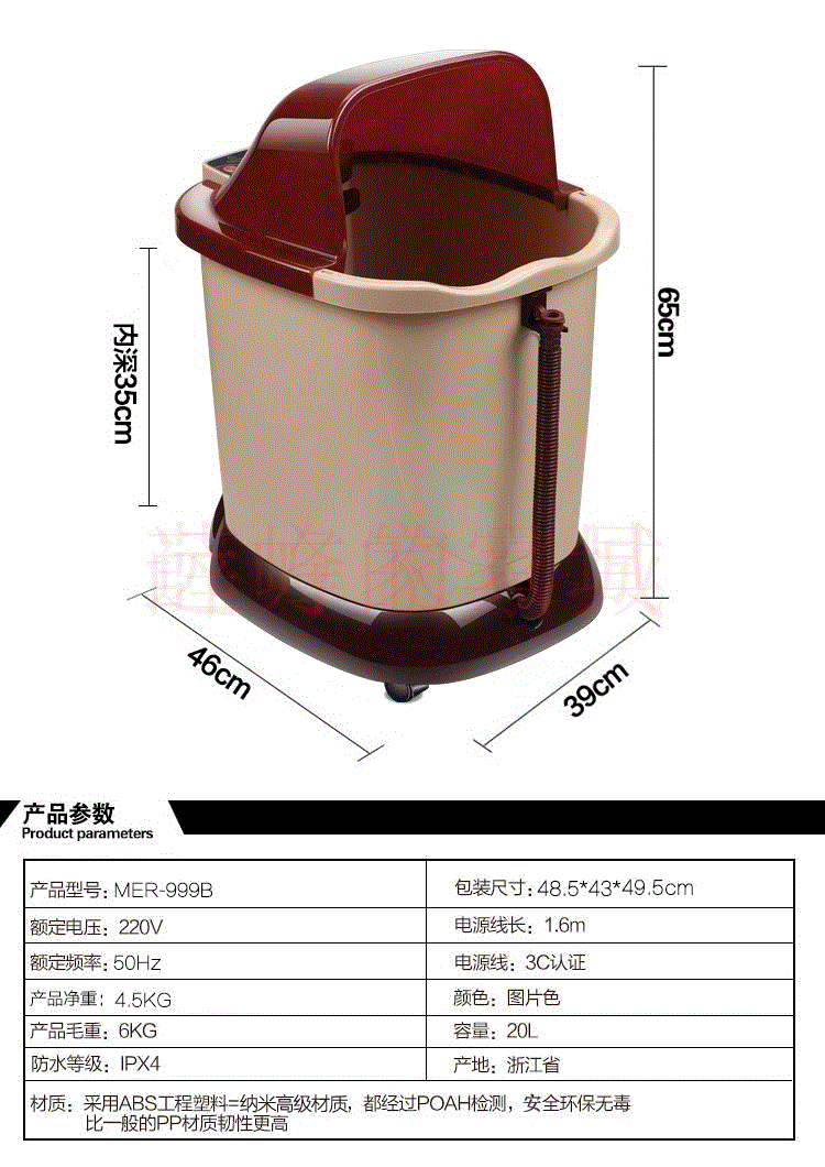 Ствол ног Дом Интеллект Полностью автоматический массажный нагрев утечка -силу и высокая пластиковая терапия в глубокой бочке