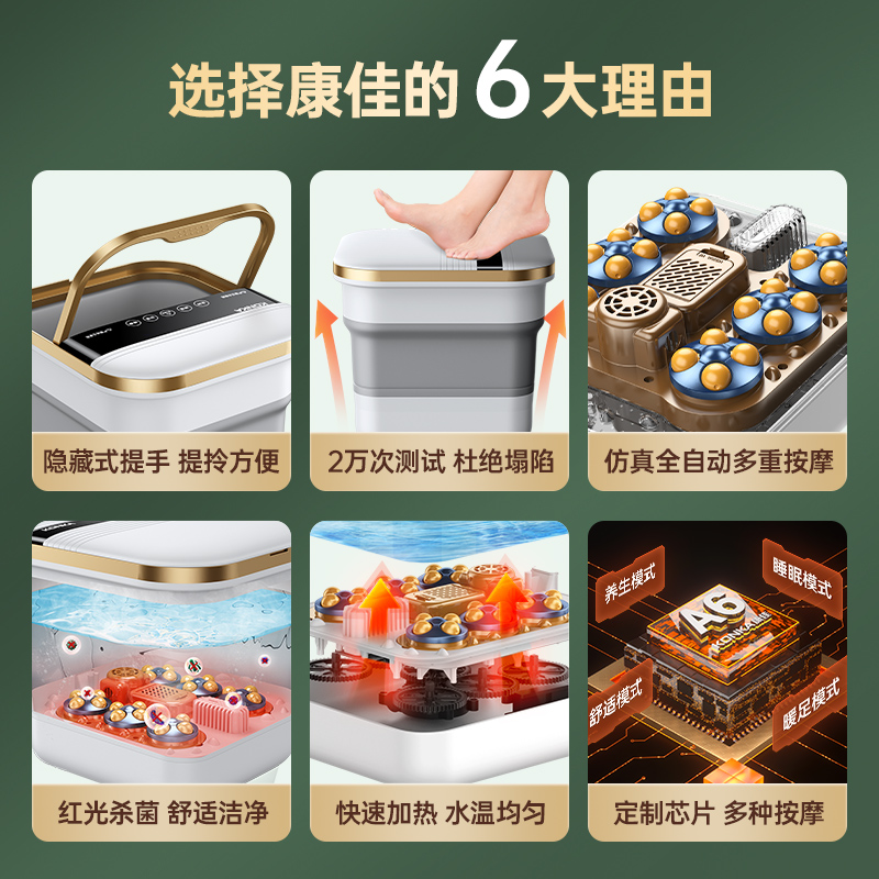 Konka, складной автоматический массажер, ванна для домашнего использования, поддерживает постоянную температуру, полностью автоматический
