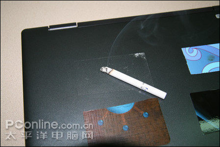 Примерно через 30 секунд сжигания пленки с помощью приклада сигарет этот оригинальный прозрачный участок этой оригинальной оболочки сжигал только желтую точку и пропитанный небольшим количеством воды на поверхность мембраны. После этого защитная пленка была Оторванный и обнаружил, что не было повреждения поверхности ноутбука, и эта мембрана может быть легко сорвана, и она не останется на поверхности ноутбука.